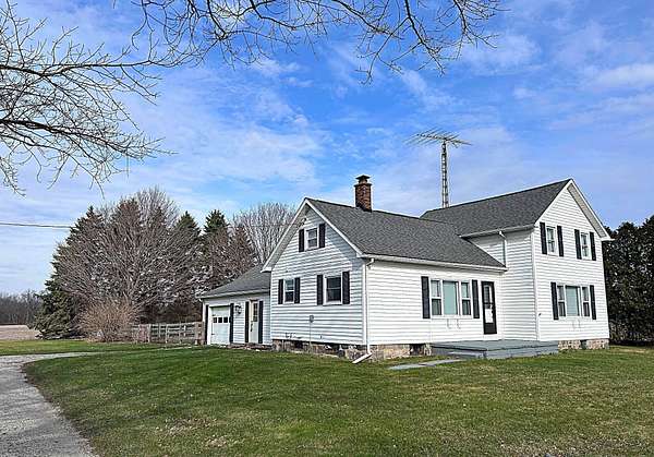 Charming farmhouse on nearly 2 acres, offering peaceful country living with plenty of space to enjoy. This cute 3 bedroom, 1 bath home is full of character and comfort. The property features both an approx 50x75 hip roof barn and a spacious 31x64 pole barn. Recent improvements include a brand new roof on the pole barn and new doors & concrete in both barns, updated bathroom, and new Navien boiler high efficiency heat. Fenced-in backyard-ideal for kids or pets, gardening, or relaxing in your private space. A 2-car attached garage adds convenience and additional storage. With its inviting charm, useful updates and versatile outbuildings, this property offers a great opportunity to enjoy country living. All measurements, figures & info are approximate & should be verified. Fiber internet available through MEC. Propane tank owned.