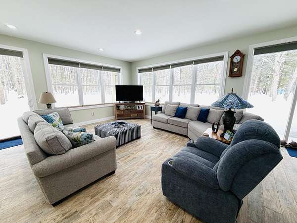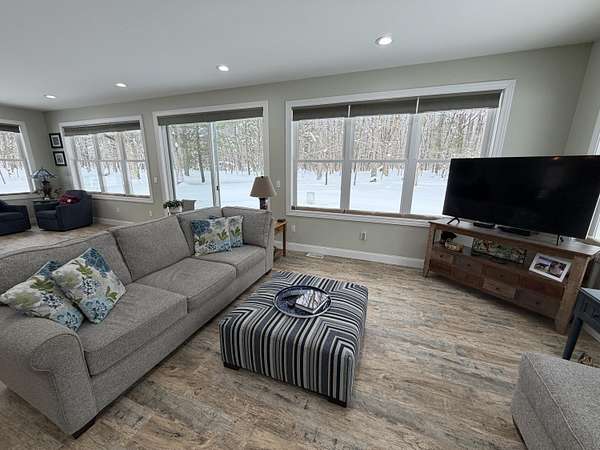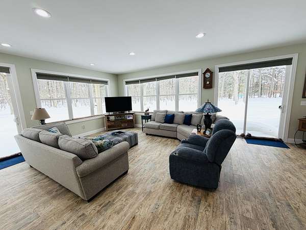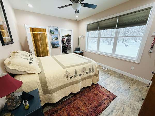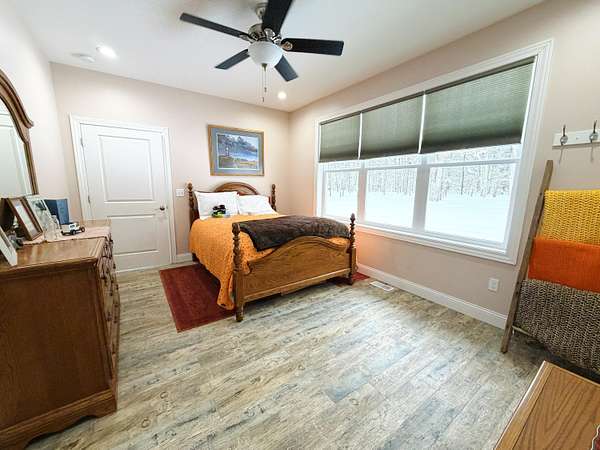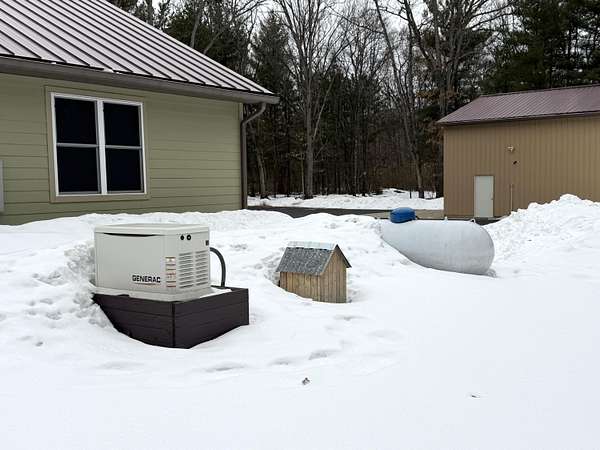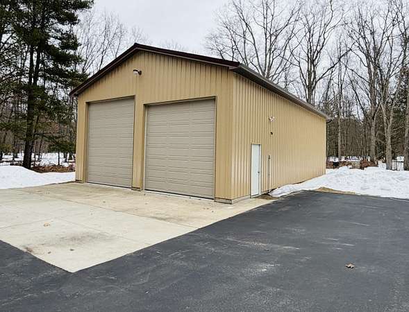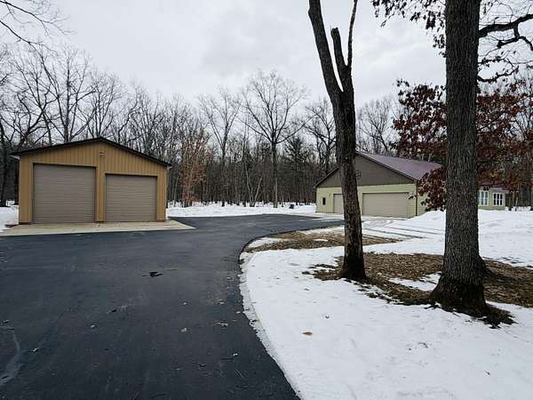 Imagine discovering your own private piece of paradise tucked away in peaceful Logan Township, Mason County - a beautifully crafted 2016 ranch home set on an incredible 10 acres (with 15 more available to purchase) of serene, wooded land that feels worlds away from the everyday hustle. As you arrive via the new asphalt driveway, the modern exterior with its durable metal roof immediately welcomes you, promising quality and low-maintenance living amid towering trees and natural privacy. Step inside, and you'll be captivated by the expansive open-concept living space - a massive, light-filled great room where the gourmet kitchen flows into the living and dining areas with quartz countertops, custom cabinetry, a spacious snack bar, and premium appliances...while abundant windows and multiple sliders frame stunning views of the surrounding woods, bringing the outdoors in and creating that rare sense of spacious luxury. Possession negotiable as seller needs to close on future home. The home features two main-floor master suites, each boasting porcelain tile flooring, large walk-in tiled showers, and generous walk-in closets - perfect for comfort, privacy, or even multi-generational living. Additional thoughtful touches include main-floor laundry, a Kinetico water softener, central air, forced-air propane heat, and a full basement with egress windows and plumbing rough-ins, ready for future expansion whenever you desire more space. Power outages? No worry here - the whole-house Generac generator kicks in automatically, ensuring uninterrupted comfort no matter the weather. Outside, a gorgeous large stamped concrete patio invites you to relax, grill, or gather with friends while surrounded by nature. For hobbies, toys, or adventure gear, the oversized attached three-car garage (much larger than standard) and the impressive 30x48 pole barn with two 12-foot doors (one extra tall for easy RV or boat storage), electricity, and loft storage provide endless possibilities. Best of all, this 10-acre parcel shares a property line with an adjacent 15-acre vacant wooded lot also for sale - combine them for the full 25-acre estate you've always dreamed of, offering unmatched privacy, recreational trails, and proximity to Pere Marquette River access and the Manistee National Forest just a short walk away. This isn't just a house; it's a lifestyle upgrade - modern, efficient, and built to last, yet immersed in the tranquility of up-north Michigan living. If you're ready to escape to your own wooded sanctuary where every day feels like a retreat, come see this exceptional property for yourself. Schedule your private showing today.