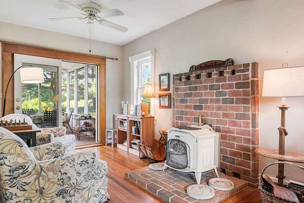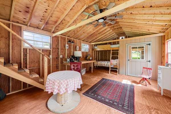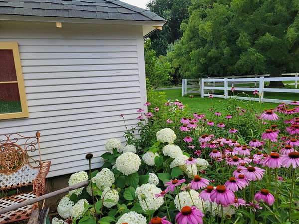 Welcome to Olive Branch Farm, a storybook setting with a charming fully furnished farmhouse, historic barn, inground pool and beautifully curated gardens on a peaceful, private 61+ acres. The cozy farmhouse has a beautifully updated eat-in kitchen overlooking the rolling farm fields and woods. The large dining area is great for entertaining and leads to a comfortable living area with a cozy wood stove. Step out to the screen porch to listen to the birdsong! Upstairs the generous primary suite has a private balcony overlooking the land, and 3 more bedrooms. The historic barn evokes a time gone by, with its tool bench, hay loft and plenty of space for tools, toys or hobbies. Out back is the sparkling private pool surrounded by picturesque gardens. The adjacent bunk house is great overflow space for lounging and extra guests. This is an extraordinary property that is just minutes from Harbor Country, about an hour from Chicago and feels like a world away from it all!