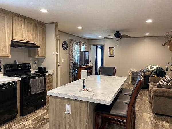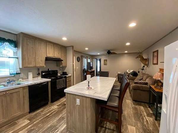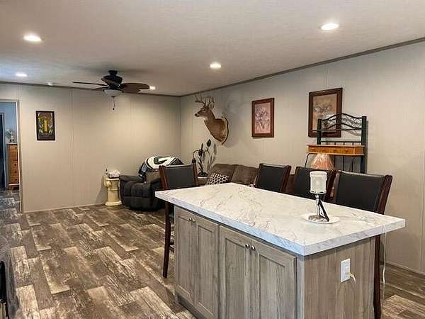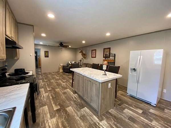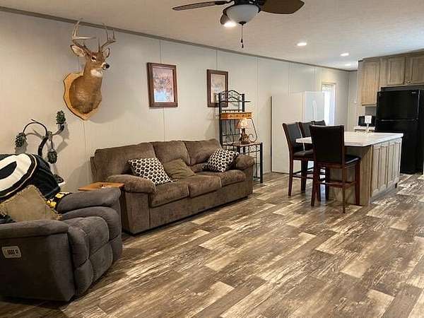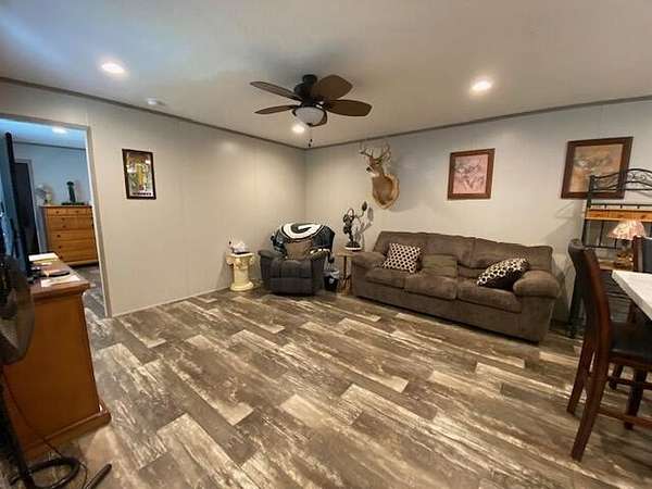 Almost new single wide mobile home sitting on 5.84 AC. This home offers 2 Bedrooms- 2 full baths, Livingroom that is open to the Kitchen with a large island- laundry room which includes a washer and dryer. The Appliances stay as well as some of the furniture items. Primary bedroom has a large walk-in closet; primary bath has double vanity- covered front porch to enjoy the sunsets- fenced yard for kids or pets. Also has carport and a shed that could be used for chickens-horses-goats or any farm animal you desire. Come check this one out, you will not be disappointed.