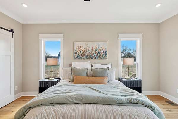 Builder will pay up to $25,000 in Buyer's Closing Cost OR other Credits The final opportunity in this sought-after neighborhood, this exceptional new construction by Simmons offers luxury living on a peaceful 2.23-acre lot in Lascassas, TN. Thoughtfully designed to balance refined elegance with everyday comfort, this custom-built home delivers a serene country setting paired with modern amenities throughout. From the moment you arrive, striking cedar posts and shutters create inviting curb appeal and set the tone for the craftsmanship inside. The open-concept floor plan is highlighted by a dramatic two-story great room filled with natural light, making the home feel both spacious and welcoming. Rich hardwood floors flow into the gourmet kitchen, which features high-end quartz countertops and a showstopping custom stone gas fireplace - perfect for entertaining or relaxing evenings at home. The main-level primary suite is a true retreat, offering a generous walk-in closet with custom built-ins, dual vanities, a luxurious soaking tub, and a beautifully tiled shower. Upstairs, you'll find two additional bedrooms, each with its own full bathroom, along with a spacious media room and an expansive bonus room above the three-car garage- ideal for recreation, work, or guests. A 14x30 unfinished attic provides ample storage or future expansion possibilities. Additional highlights include a convenient mudroom, charming covered front and back porches for year-round enjoyment, and access to both fiber and DSL internet through DTC. Up to $10,000 toward Buyer's Closing Costs is available - contact the listing agent for lender details. Don't miss your chance to own the last home in this exceptional community!