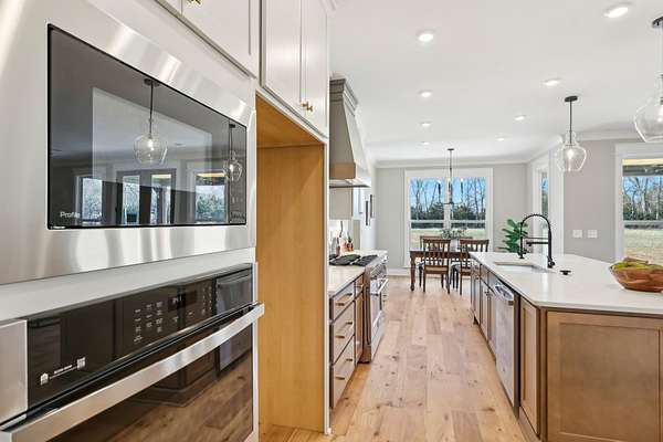 - Built-In Electric Oven, Dishwasher, Disposal, Gas Range, Microwave, Stainless Steel Appliance(s)