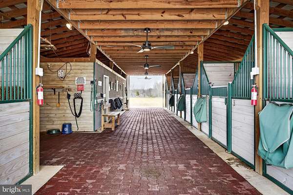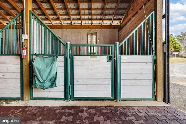 Welcome to WhiteCliff Farm! Completed in 2022, this turnkey 8-acre equestrian facility in northern Culpeper County offers serious horse infrastructure in a convenient location-approximately 25 minutes to Warrenton, 15 minutes to Culpeper, and about one hour to Dulles International Airport-with the option to build a home on the property if desired. An automatic privacy gate (operable by keypad, remote, or phone app) welcomes you from a hardtop road to a center-aisle barn on a full concrete slab, featuring six 12x12 interior stalls with mattresses and custom American Stalls fronts, plus two 10x12 exterior guest stalls. The barn includes rubber pavers in the aisle, WiFi cameras (four stalls and barn front), WiFi-enabled smoke detectors, fly spray dispensers with refillable canisters, a fully finished office/tack room with full bath and kitchenette, and a heated feed room with washer, dryer, and particulate filter on the well, all backed up by a Generac generator. Horses benefit from heated automatic waterers in the pastures, a wash rack with hot/cold water, and a solarium heat light in the wash area, while all drive areas are constructed over geotextile for durability. The 100x200 arena is professionally built with geotextile, #2 stone crush, bluestone, and beautiful golden angular sand, illuminated by LED lights for evening rides and prepped with conduit and a hydrant in place for a future arena watering system. Truly a horse lover's paradise, WhiteCliff Farm is ready for a new steward who wants the ultimate in luxury for their horses and themselves.