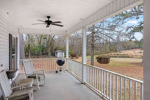 Perfectly maintained, like-new two-bedroom, two-bath home situated on approximately 20 acres in North Lowndes County, offering a private and peaceful setting with a pond. The home features an open-concept kitchen, dining, and living area, creating a comfortable and functional living space ideal for everyday living or entertaining. Enjoy tranquil pond views from the 10x44 covered front porch--perfect for relaxing and taking in the surrounding countryside. The property includes fenced pasture suitable for livestock, along with a pole barn for tractor and equipment storage. Additional highlights include handicap accessibility, a whole-house generator, and a reinforced hall bathroom designed for use as a storm shelter, providing added comfort, safety, and peace of mind. An excellent opportunity to enjoy quiet country living with ample space to work, relax, and unwind.