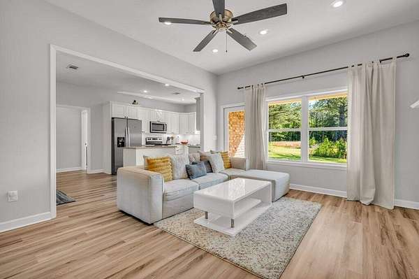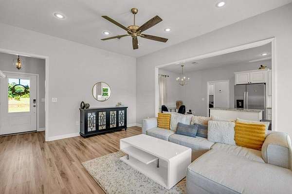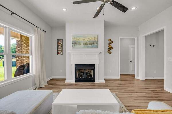 Country Living Minutes from Mississippi State | Split Floor Plan Three Bedrooms + Office | Foyer | Open Living Area w/Fireplace & Patio Access | Kitchen w/Island, Stainless Appliances, & Granite Counters | Dining Area | Primary EnSuite w/Tray Ceiling, Double Vanity, Standalone Shower, & Soaking Tub | 2+/- Acres | Two Car Garage