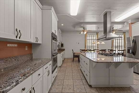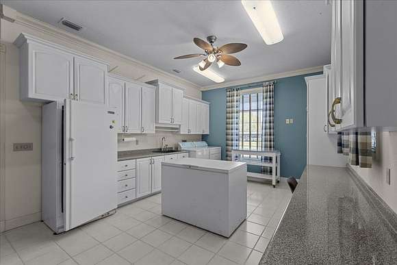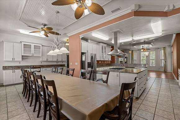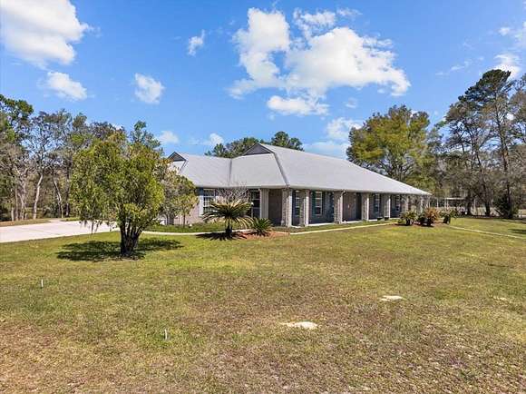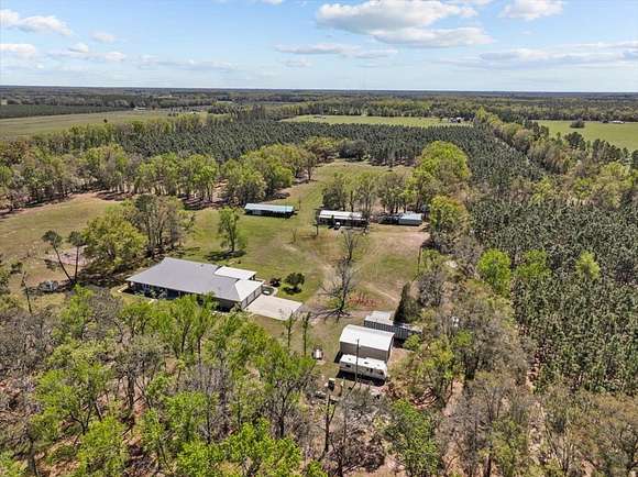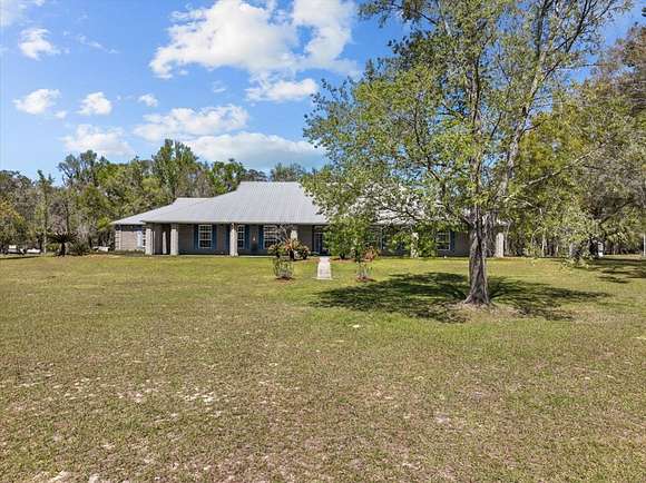 CUSTOM 4 BD/3 BA HOME, a 3/2 guest home and metal workshop on 40 ACRES near freshwater springs and the Suwannee River in Gilchrist County! The stately brick home with metal roof is elegantly situated on a sprawling 40 acres with other large tracts of land bordering it, as well as the Otter Springs Park and conservation lands. Constructed with superior workmanship and taste, this home boasts 4,074 SF of conditioned space and 6,900 SF under roof that includes wrap around porches on 3 sides of the home. The entrance to the home offers a tiled foyer with a nook for displaying treasured items and then opens into the great room with a vaulted ceiling and french doors to the back porch. Engineered hardwood or tiled floors, 10' ceilings and decorative crown moulding run throughout the home. There are 2 primary bedrooms with ensuite bathrooms and 2 additional, very roomy bedrooms as well. One of the primary bedrooms has a decorative ceiling feature, 4 bay windows, stain glass panels on one wall, and a private access door to the back porch. The primary bathroom offers a jetted soaking tub, walk in shower, vanity counter and 2 (two) walk-in closets! The entrance to all bedrooms has a rain glass transom above the doors showing added attention to detail. Central to any home is the kitchen and this one was designed to function for family and entertaining! The large, cook's kitchen is equipped with a ventless stainless steel range hood over the 6 burner gas stove top, 2(two) ovens, a warming oven, dishwasher & microwave. The over-sized, eat-in kitchen offers seating at the island bar as well as room for a large dining table and additional refrigerator. A large pantry closet and 2 (two)freezers and washer and dryer are conveniently located just off the kitchen in the super-sized utility/multi-purpose room!There are upper and lower cabinets and a built-in desk. It can be used for crafting, an office, canning, and laundry...the uses are endless! Adjacent to the kitchen is the family/dining room,with a relaxing fireplace wall with built-in entertainment center, shelving & storage galore! The decorative ceiling and large bay window add to the elegance of the space. An over-sized 3 car garage is attached to the home and includes a concrete block, ventilated 'safe room' with 8" walls and steel door. A whole house gas generator is connected for convenience during power outages. There are many other features of this magnificent property that you will want to see for yourself! Call to schedule a private tour of the property, be impressed and fall in love with peaceful country surroundings in a comfortable, luxurious home!