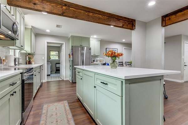 - Decorative Lighting, Eat-In Kitchen, Natural Woodwork, Open Floorplan