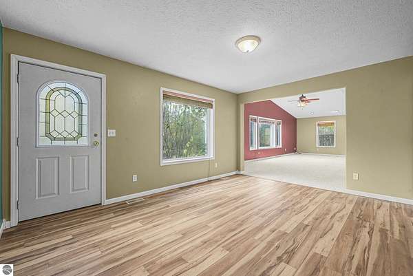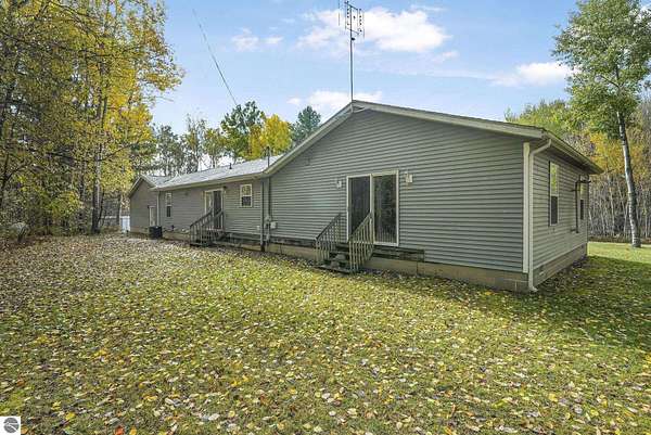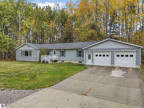 Welcome to the McBain School District -- here is a beautiful 3-bedroom, 2-bath ranch style home perfectly situated between Cadillac and McBain. Set on 1.6 wooded acres at the end of a private drive, this property offers the serenity of country living with the convenience of nearby amenities. Enjoy the ease of main-floor living with just under 1,800 square feet of finished space featuring an open layout, large bedrooms, and a private primary suite complete with walk-in closet and full bath. The kitchen includes a cozy breakfast nook with a slider to the backyard--perfect for morning coffee or outdoor dining. The primary bedroom also features its own slider for easy backyard access. Can you just picture a deck the full length of the home? It's waiting for you to design ;) For our snowy Northern Michigan winters, you'll appreciate the oversized finished two-stall garage that opens directly into a spacious mudroom--ideal for storing boots and gear, or easily used as a home office. Inside, custom blinds and ceiling fans throughout help maintain a comfortable temperature year-round. There is so much great natural light throughout! Custom build features include bullnosed drywall edges, vaulted ceilings in the living room and primary suite and split floor plan. A Formal dining room off the front entry is so welcoming! Gorgeous wood plank floor too! Recent updates include a newer water heater, central air conditioning, and a pellet stove that adds warmth and charm to the main living area while providing an efficient alternative heat source. The full unfinished basement offers excellent storage and potential for future living space, while the additional detached one-stall garage with workshop provides extra room for hobbies, tools, or recreational gear. A garden shed is included too - just needs a garden! Surrounded by mature trees, this home blends privacy, comfort, and functionality--offering everything you need for relaxed, year-round living in Northern Michigan.