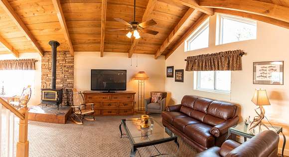Private !One of a kind Property! This beautiful 3438 sq foot home is surrounded on four sides by Sierra Pacific Industries property,so NO neighbors.This property affords you the privacy your looking for and easy access to HWY 299. You have Mt Shasta to the West Mt Lassen to the South and Burney Mt to the SW. Custom tile entry leads you to the Great room,dining room and kitchen. The great room has two sitting areas with views in all directions. Custom window Treatment and Bali honey comb shades. The ceiling is awesome open vaulted beam Pine. The custom rock hearth holds a Buck Wood stove .Large dinning room with an antler chandelier. hardwood floors. Kitchen has customer cabinets, center island,5 burner stove,Corian counter tops,3 bay sink, newer Kenmore stainless steel appliance More... The first bedroom down stairs has a walk in closet and great views ( coffee in bed and enjoy the view). Laundry room with washer and Dryer great storage space. Middle bath has full shower and large vanity. Custom carpet and hardwood flooring throughout.Master bedroom has a 3 door and 2 door set of closets . . There is a sink and dressing vanity area outside the main bathroom , with tub and separate shower in main bath. Up the short flight of stairs in great room you enter into a lounge area with tons of storage hardwood floors ,could easily be converted into a fourth bedroom. 3 dormers. Hallway bath is large with shower and huge vanity and storage. The upstairs bedroom has custom carpet and large closet space with pleasant view looking East. Now for the game room.. Professional Brunswick pool table is the centerpiece with vaulted ceiling and french doors to the outside. The home furnishing are available , if interested, separate from homes sale price. Outside there is a 3 bay plus shop area garage, and two out buildings