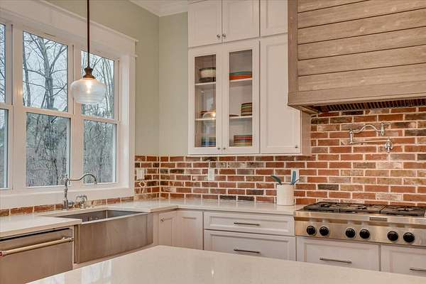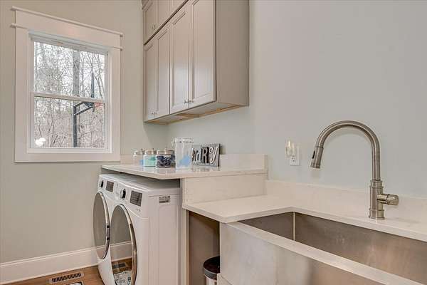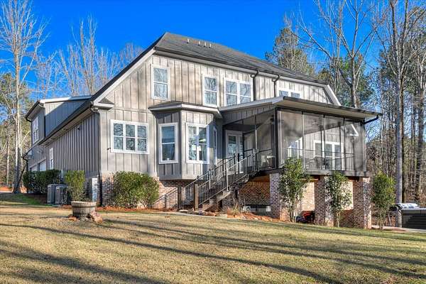 Nestled on 2.93 wooded acres backing up to the scenic Kiokee Creek, this luxury estate home offers unparalleled privacy, breathtaking views, and modern elegance. Thoughtfully designed with five spacious bedrooms, five full baths, a half bath, and a separate-entry basement studio, this home checks every box for comfort, functionality, and style. Upon entry, you're welcomed by soaring two-story ceilings in the foyer and great room, creating an airy and inviting ambiance. The formal dining room is perfect for entertaining, while the gourmet kitchen is a chef's dream-featuring a commercial-style 6-burner gas cooktop with griddle, double ovens, professional-grade refrigerator/freezer, farmhouse sink, prep sink with filtered water & disposal, pot filler, quartz countertops, and custom solid wood cabinetry with deep drawers. A walk-in pantry ensures ample storage, and the adjacent laundry area includes a built-in pet room, work space, and extra storage. The primary suite is a retreat in itself, boasting large windows, a cozy fireplace, dual walk-in closets with built-ins, a spa-like bath with a clawfoot tub, walk-in shower with dual shower heads, heated flooring, and separate his-and-her water closets. Upstairs, four spacious bedrooms offer both privacy and convenience-two with en-suite baths, while the other two share a Jack-and-Jill bath with dual toilets and a separate bath area. The basement studio is ideal for in-laws, guests, a private office, or rental income. It features a Murphy bed, full kitchen, full bath, and fireplace, all with its own exterior entrance. Outdoor living is just as impressive, with a screened back porch overlooking the pristine property and Kiokee Creek, a luxury swim spa (30K value), a fire pit area with lighting, and plenty of space to explore and play. Additional premium features include, spray foam attic insulation, encapsulated & conditioned crawl space, wifi Everlights, and expansive driveway Perfect for family living, entertaining, Masters rental, or simply relaxing in nature, this one-of-a-kind home is a must-see to truly appreciate all it has to offer!