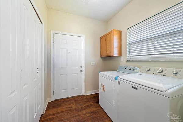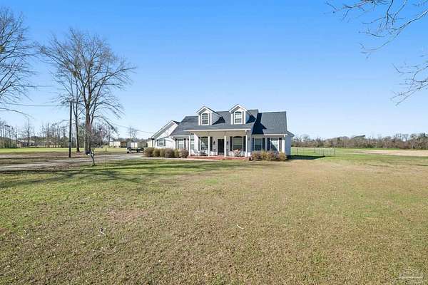 Beautiful custom built home sitting on almost 3 acres only 15 minutes from Five Points in Pace! This two-story home features four bedrooms and two bathrooms along with an amazing front porch to enjoy the peace and quiet. The hardwood flooring throughout the home adds warmth and character to the home. The primary suite is on the first floor and has a spacious bedroom and bathroom. The primary bathroom has a separate shower and a soaking bathtub. The open floor-plan kitchen has plenty of space with lots of counter space. This home also has a pole barn that can be used to protect cars, tractors, RVs, etc. The bedroom/bonus room upstairs can be used as a bedroom, an office, or storage. If you are looking for a spacious, beautiful home with lots of land, view this home today!