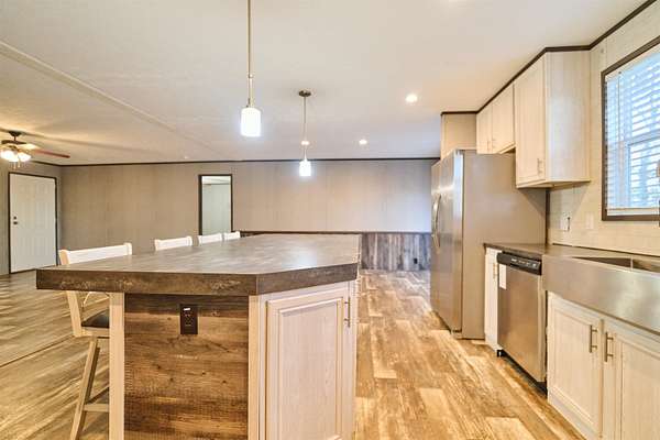 Welcome to your Country Home in the Ozarks!! This Beautiful home is privately located close to Spring River and Mammoth Spring State Park. A trout and bass fishing paradise is just a short distance away. Canoeing, floating and swimming in the Summer. Hunting in the Fall/Winter in your own back yard!! This Beautiful 2021 manufactured Home is over 2000 sq ft and sits on 5 UNRESTRICTED acres, mostly wooded, with abundant wildlife. Includes 4 bedrooms, 2 bathrooms, 2 living rooms. Perfect for multi-generational living. - Grand open floor plan! Kitchen has large island and Stainless steel appliances. Main bedroom with ensuite is large with separate bathtub, walk in shower and huge walk-in closet. Very spacious rooms with hard surface flooring through-out. New Deck in 2025! Septic and Well installed in 2021. Plus fenced garden area! Come take a look!