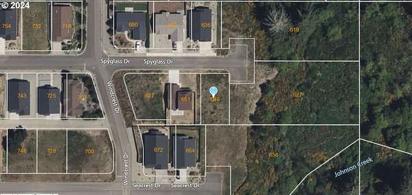 Hwy 101, west on Seabird, L on Natalie Way, L on Spyglass to lot on right.
