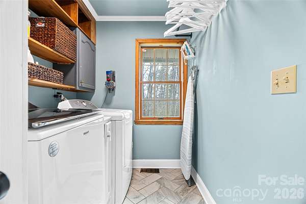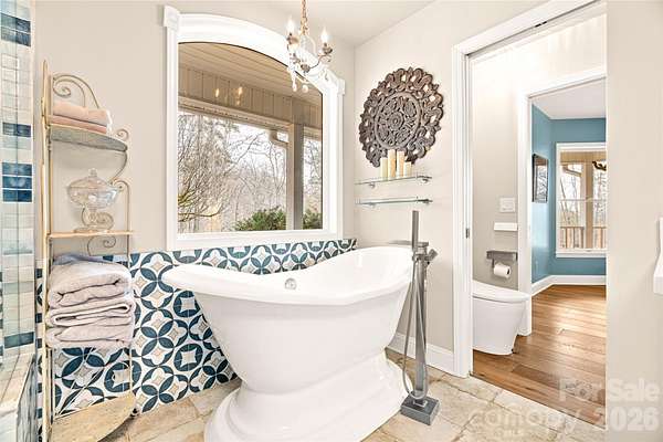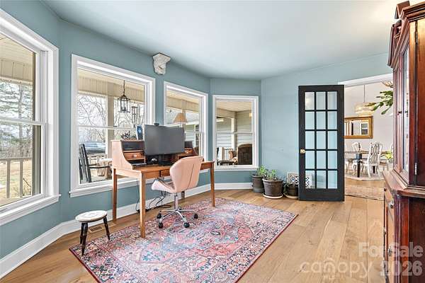 RARE FIND! Whether you're seeking privacy, space to garden, or a move-in-ready home with modern comforts, this property delivers both function and lifestyle all just minutes from downtown MARS HILL. This Beautiful contemporary farmhouse is located on 1.94 flat, usable acres. 3BR / 2.5BA, 2,138 sq ft home features a main-level primary suite. Living area has vaulted ceilings, sky lights and engineered hardwood throughout and in the bedrooms (tile in baths). The open kitchen offers wood beams in the ceiling, ALL Bosch appliances, gas range and vented hood, soft-close cabinetry. Open concept which flows into a cozy living area with the beautiful floor to ceiling natural stone, wood-burning fireplace. The primary ensuite is a true retreat with glass-enclosed steam shower, cast-iron soaking tub, bidet toilet, soft-close cabinets, and designer walk-in closet. Through the pocket-doors from ensuite is access to a bright private office overlooking the front yard with abundant natural light. Additional features include well + septic, central HVAC, appliances, washer and dryer included, and a whole-house water filtration system located in the crawl space. Enjoy outdoor living with a wrap-around front porch and open back deck, plus fire pit, fenced garden space, fruit trees, mature trees, and two storage sheds. Pet-friendly features include a large fenced-in side yard with dog-door access to both the home and garage, along with an invisible fence surrounding the full 1.94-acre perimeter (two collars included).
