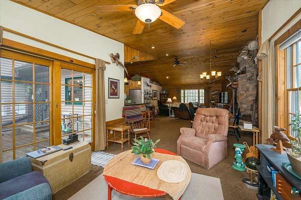 Discover the perfect blend of country privacy and close to town convenience on this beautiful 14.96-acre property. This owner-built home offers the comfort and ease of one-level living with warm inviting spaces that include 2 bedrooms and 2 bathrooms. In-floor heat will keep you cozy and a stunning floor-to-ceiling stone fireplace is the centerpiece of the living area. Large Anderson windows & patio doors fill the home with natural light and provide peaceful views of the surrounding gardens and landscape. The property is set up for hobbyists, outdoor lovers, and anyone seeking room to spread out. Enjoy a charming chicken coop, an attached 3 car garage, and a spacious 30x42 ft stick-built shop—with its own 100 Amp service and one side heated and insulated—ideal for storing toys, equipment, or pursuing year-round projects. The overhead jib crane will stay with the property! With established gardens, abundant green space, and the quiet of country living just minutes from town amenities, this property offers a rare combination of comfort, functionality, and privacy. A truly special place to call home.