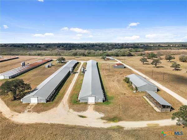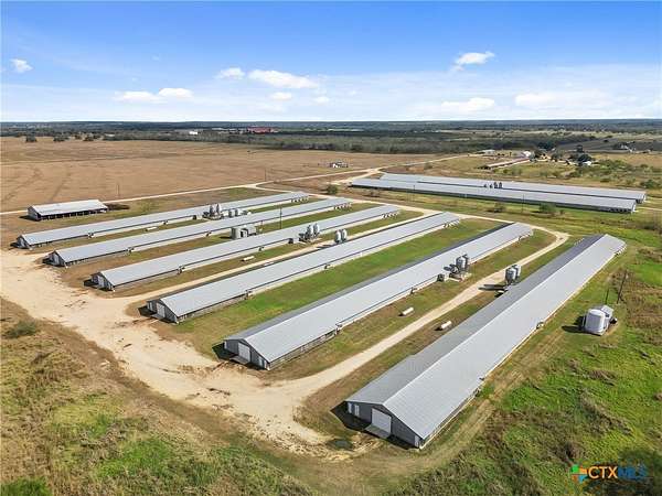 Income-Producing Poultry & Cattle Operation. Spanning improved pastures with coastal, Johnson, and winter grasses. This turnkey farm includes 11 chicken houses (2 built in 2015, 9 upgraded in 2013) featuring the newer evaporative computer driven cooling systems, propane burners, and sterilized feeding tray systems. Infrastructure includes 3 water wells, 2 litter stack sheds, clean-out sheds, multiple electric meters, and 4 single wide trailers. The property is perimeter and cross-fenced with cattle pens, interior gravel roads, and multiple access points from Hwy 304 and CR 437. Outstanding rating, with Appraisal & PNL available for serious inquiries. Additional highlights include 3 ponds, a 20-ft concrete spillway, and a picnic area with fire pit surrounded by live oaks and mesquite. Abundance of native brush, for wildlife cover. Whitetail deer, turkey, and hogs provide recreational hunting. A rare opportunity to acquire a fully operational, dual-income agricultural investment. Farm equipment is available and negotiable. Shown by appointment only, must contact listing agent in advance.