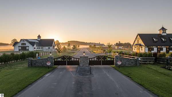 This is an opportunity to own one of the few remaining vacant parcels in Grand Prix Village North, Northern Michigan's premier gated equestrian community adjacent to Flintfields Horse Park, home of Traverse City Horse Shows. The 12.1-acre parcel is located at the front of the development with convenient access to the showgrounds. It has a recently installed berm to ensure privacy, GGT all weather 150'x250' riding area and concrete tent pad. This parcel is ready for you to set up your tent stalls while you plan your equestrian estate. Grand Prix Village North was thoughtfully designed by equestrians to support an equestrian lifestyle, featuring luxury barns in a secure, private setting. This lot provides direct access to the showgrounds via a private network of bridle paths. Paved roads throughout the community ensure easy year-round access, and electric, natural gas, and high-speed internet are available at the site. Whether you're a competitor, trainer, or equestrian enthusiast, this property offers a rare and exceptional opportunity in the heart of Northern Michigan's horse country.