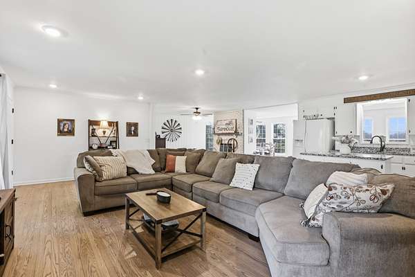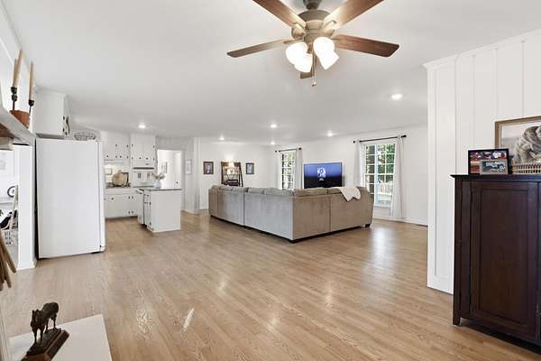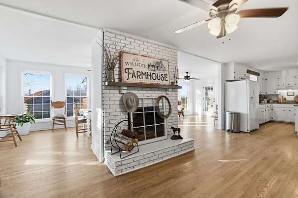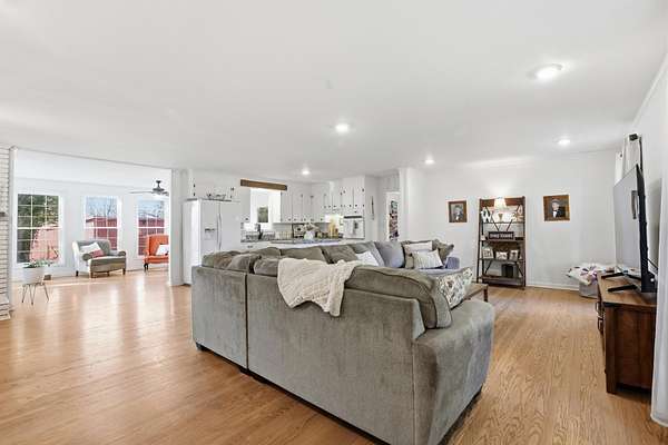 Seller offering up to $10,000 toward closing costs, rate buy-down, or buyer’s choice of incentives with acceptable offer! This fully renovated farmhouse is set on 5.82 picturesque acres just three miles from I-65, offering the perfect blend of timeless character and modern updates. The all-brick home features four bedrooms and two-and-a-half bathrooms, thoughtfully designed for both comfort and functionality. A recently added primary suite creates a private retreat with a spacious layout and double vanities, while the expanded living area enhances the open, inviting flow—ideal for everyday living and entertaining. Original hardwood floors add warmth and charm, and large windows frame beautiful views of the rolling landscape and mature trees.