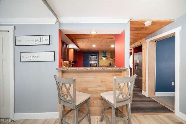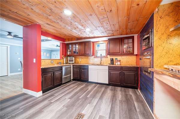 A wonderfully updated 3 bedroom, 2 full bath ranch on almost 2.5 acres in the Maplewood Schools district. This spacious home has had many recent updates both inside and out. There is a new metal roof 9/25, the hot water tank is 2025, and the furnace is 2020. There is a new septic as of 12/25. An updated kitchen features granite counters, lvt flooring, and stainless appliances. A large living room is open to the kitchen. A large master bedroom has as huge walk-in cedar closet. There is a giant/new 16x11 bathroom with a huge bathing tub, glamour shower, and double sinks. The other full bath is brand new as well. There is an office, foyer with built in coat area, full laundry, and ample closet space. The exterior is wrapped with a natural wood deck that is perfect for enjoying the outdoor amenities of this property. There is a giant 35x24 garage with 200 amp service, and multiple full garage doors. A small pond solidifies the country living feel.