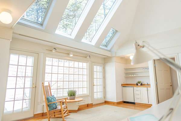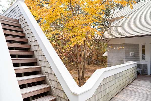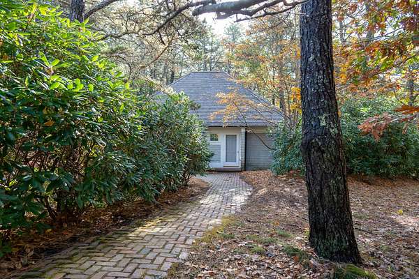 Discover a timeless piece of livable art. It is a masterclass in organic design by architect Robert Kennedy and builder Eric Winslow. Set on 2.48 wooded acres bordering the estuaries of Herring River (Cape Cod National Seashore), this estate offers ultimate privacy. Kennedy's signature integration of architecture and custom furnishings begins at the boardwalk entrance and continues throughout the home. The interior features connected separation, using a central chimney, open balconies, and elevation changes to define spaces while maintaining an airy flow. Multiple curving perches offer intimate views of the wild Wellfleet landscape. While social areas are open, the bedrooms are distinctly private. The property also includes a 400 sq. ft. studio loft with a kitchenette above the two-car garage, plus a separate structure housing an artist's studio (also with kitchenette) and a once-functional indoor pool. This home is the pinnacle of Outer Cape privacy and architectural intent, perfect for the discerning visionary.