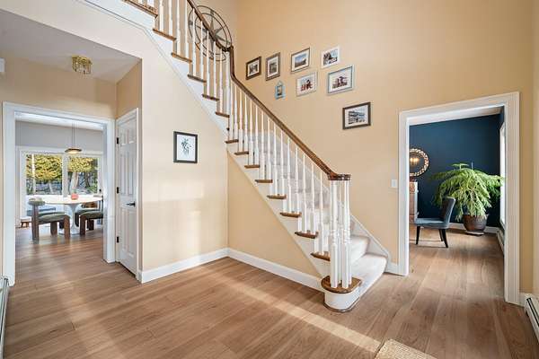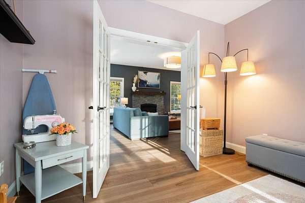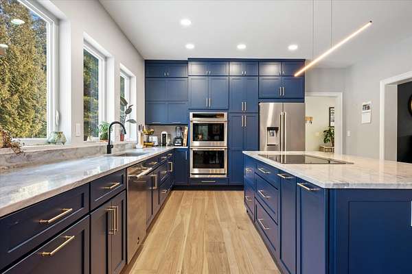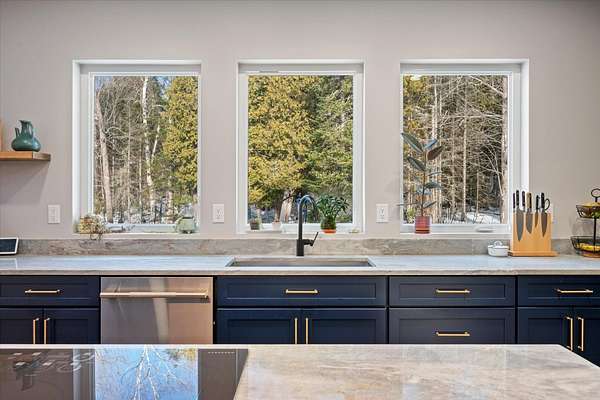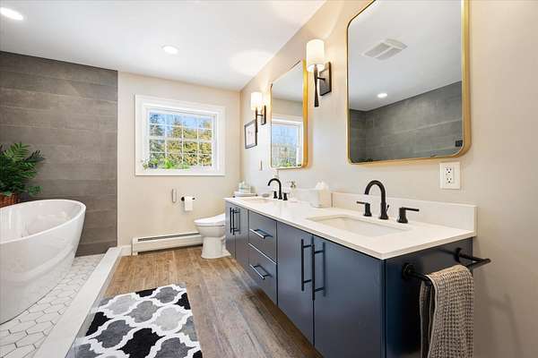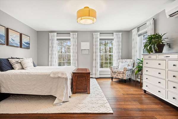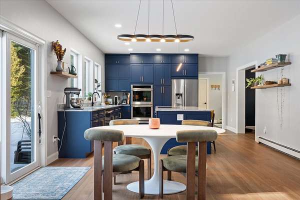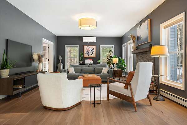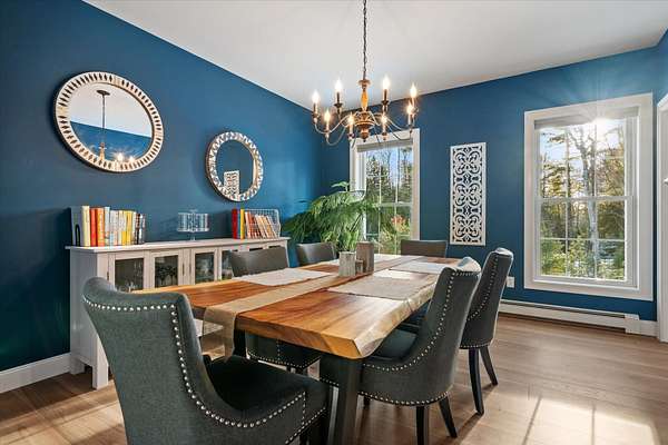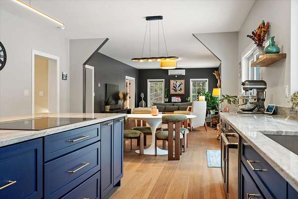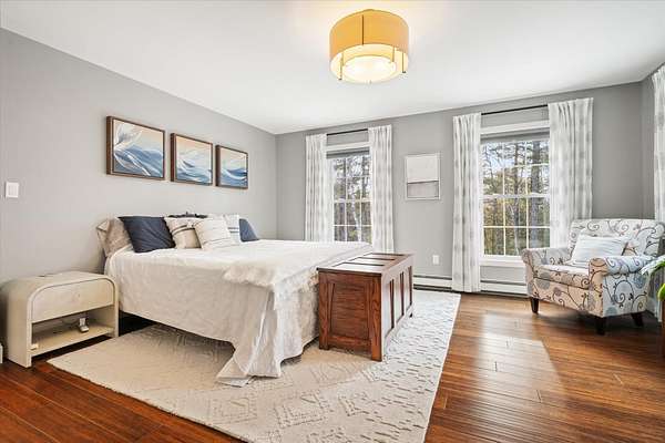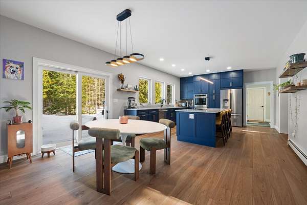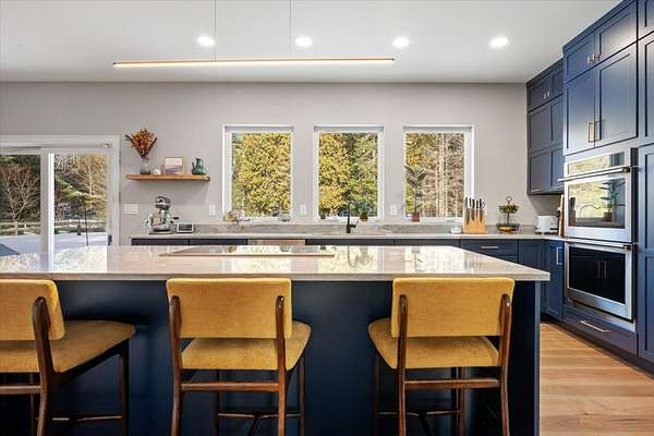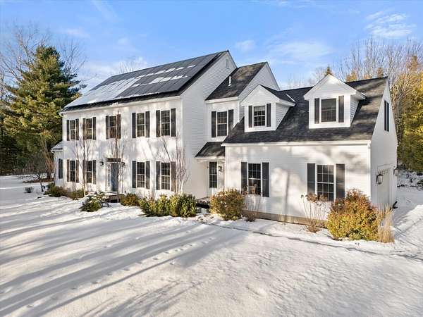 Exquisitely remodeled 4,308A+- sq ft Colonial set on 5.93 private acres, offering exceptional craftsmanship, thoughtful design, and modern efficiency throughout. Step inside to a freshly painted interior featuring a spacious mudroom and beautifully updated half bath with new tile, vanity, and fixtures. The show-stopping open-concept kitchen is flooded with natural light from three oversized windows and showcases a striking blue design with an expanded island, induction cooktop, granite countertops, custom garage-door cabinetry, stainless steel appliances, and double wall ovenaEUR"perfectly suited for both entertaining and everyday living. The kitchen flows seamlessly into the expansive living room, where rich hickory hardwood floors span the entire first level. A dramatic rock fireplace with custom mantel, 80,000 BTU woodstove, and heat pump creates both warmth and efficiency. French doors open to an inviting den, while the main level also offers a dedicated office and elegant formal dining room. Upstairs, the serene primary suite features a heat pump, custom walk-in closet, and new bamboo flooring, continued throughout all four bedrooms. The spa-inspired primary bath has been completely reimagined with a custom wet-room tiled shower with smart shower system, soaking tub, double vanity, and new fixtures and tile flooring. Three additional bedrooms and a generously sized family room with dormers over the garage provide flexible living space, with potential for a fifth bedroom. Additional highlights include a heated two-car garage with EV charging stations, generator, and an impressive solar array with 36 panels (14.4-kW with 11.4 kW SolarEdge inverter). The beautifully landscaped grounds feature 14 raised garden beds, fencing, a newly paved driveway, custom stone front walkway, and a stone patio ideal for outdoor entertaining. Extensive upgrades throughoutaEUR"ask for the detailed upgrade list and experience this exceptional property for yourself.