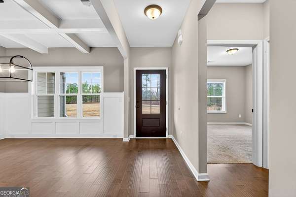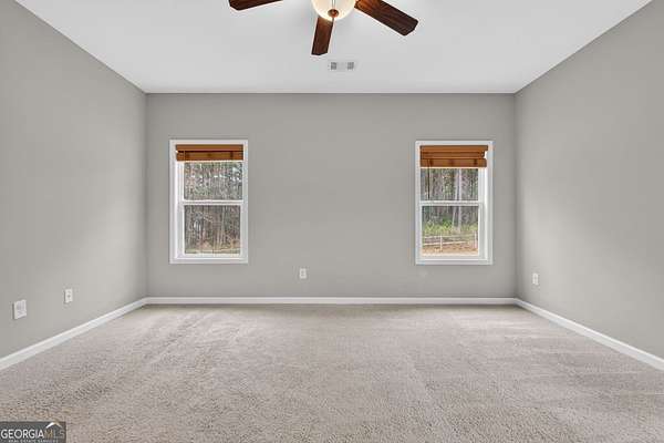 Welcome to your private retreat on 2.5 beautiful acres in a secluded rural setting - with NO HOA and room to truly live, relax, and enjoy! This thoughtfully designed 4-bedroom, 3 full bath home offers a functional and flexible layout perfect for today's lifestyle. The main level features a spacious primary suite plus an additional bedroom and full bath - ideal for guests or multi-generational living. The primary suite is a true sanctuary, complete with a spa-like bath featuring a separate tiled shower, soaking tub, and granite countertops. The heart of the home is the well-appointed kitchen showcasing: stainless steel appliances, granite countertops, stylish tile backsplash, ample cabinetry and workspace. Upstairs, you'll find two additional bedrooms, a full bath, and a huge bonus room - perfect for a media room, playroom, home office, or gym. Quality and efficiency shine throughout with top-rated Argon gas-filled windows, foam insulation in the attic, beautiful hardwood floors, tile flooring in all bathrooms. Step outside to enjoy the fenced backyard and relax under the covered back patio, ideal for entertaining or peaceful evenings overlooking your private acreage. Conveniently located near I-85 and just minutes from Serenbe, offering shopping, dining, and community events while still maintaining the serenity of country living. This property combines space, comfort, efficiency, and location - a rare opportunity you don't want to miss!