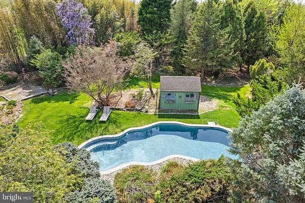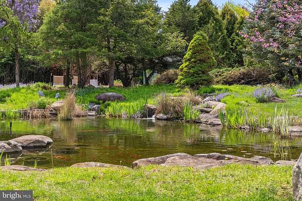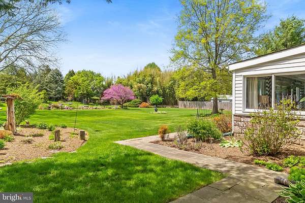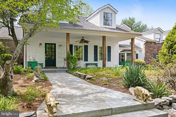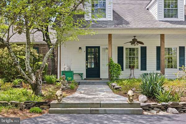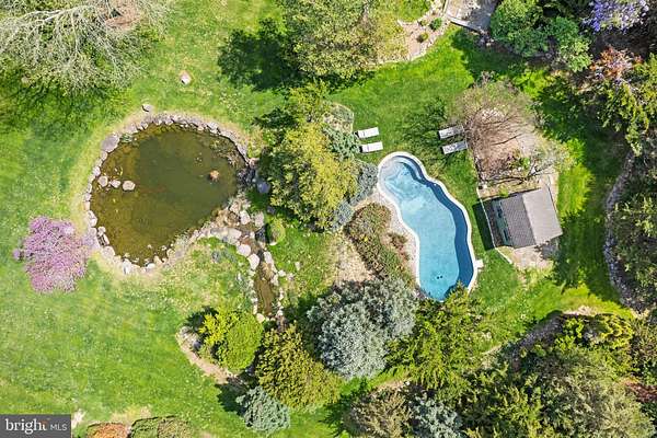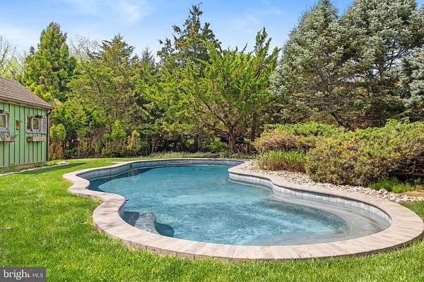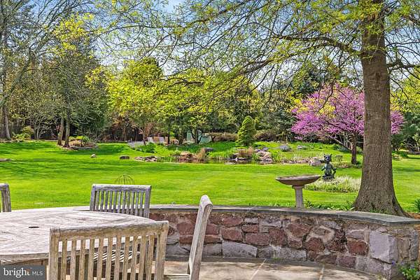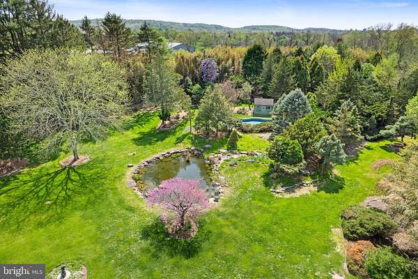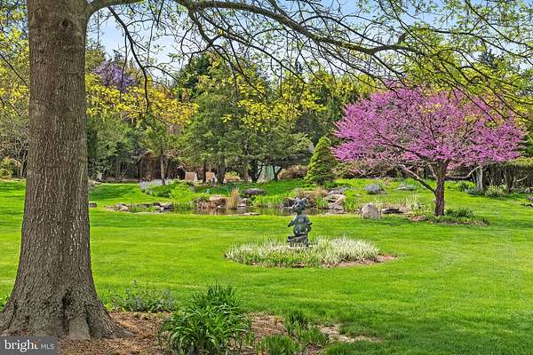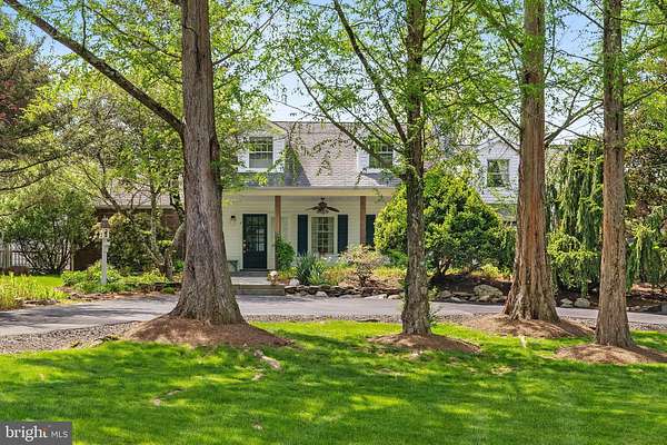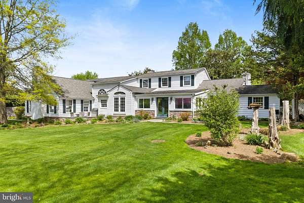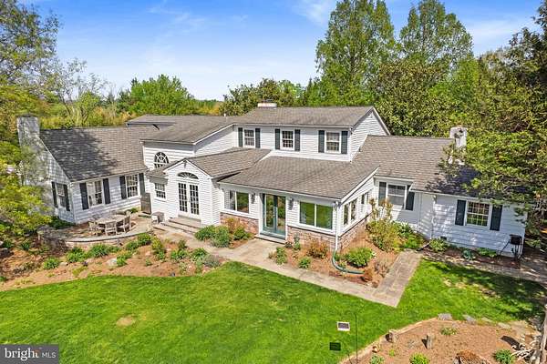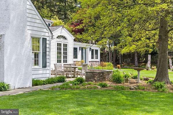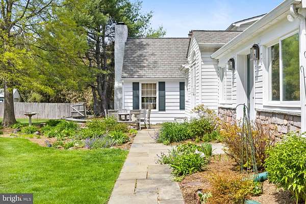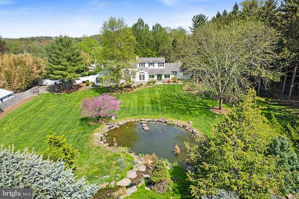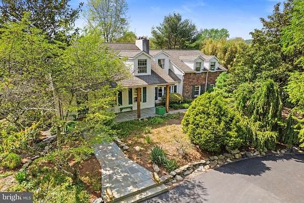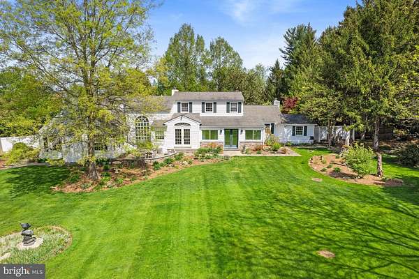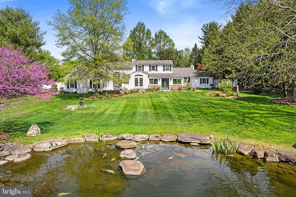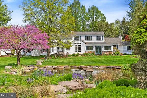 Located on one of the most picturesque, coveted roads in Solebury Township, that features a historic covered bridge, is an expanded Cape Cod residence. The home, which sits on 3 bucolic acres, is surrounded by lush mature landscaping, walking trails, and stone terraces. And don't forget the pool and koi-filled pond! Elegantly refreshed and thoughtfully designed, the residence boasts architectural details and generous living spaces just minutes from downtown New Hope. From the moment you arrive, the expansive covered front porch sets the tone with its charming flagstone flooring that evokes the timeless beauty of a Southern veranda. Step inside to discover wood flooring, mostly throughout, custom wainscoting, four fireplaces and a breakfast room that is continually bathed in natural light. Most coveted is a first floor primary bedroom with a sumptuous en-suite bath that features a soaking tub and walk-in shower. The first floor plan continues with a formal dining room and living room that flank the entryway. Facing the spectacular lawn and gardens is a cozy sitting room which is adjacent to the breakfast room and gourmet kitchen, outfitted with top-tier Viking and Subzero appliances, a cooking island, wet bar with a copper sink and custom cabinetry. The eat-in breakfast room flows seamlessly into the adjoining spacious and airy sitting room . Also on the first floor is a "Ralph Lauren" library with fireplace, an over-sized half bath and a laundry room. A newer and separate wing offers a grand library, with custom built-in bookcases and a wood-burning fireplace. This wing has a separate staircase to a large Guest Suite with spacious bath. The main upper level offers 2 large bedrooms, and a hall bath. Also included is a two-car side entry attached garage.. This property offers both privacy and tranquility, all within the award winning New Hope-Solebury school district. An extraordinary opportunity to own a residence on one of the idyllic country roads in Solebury!