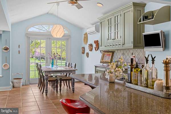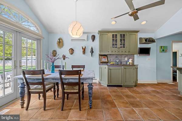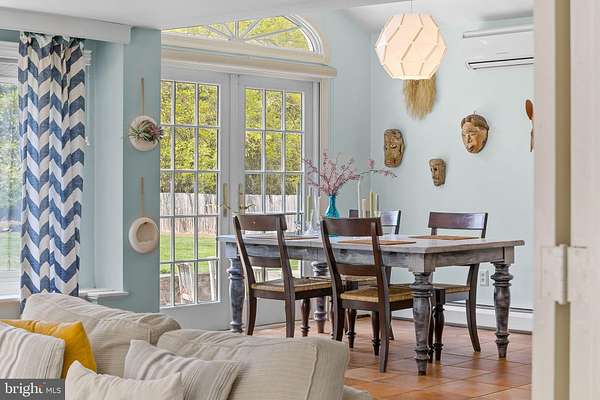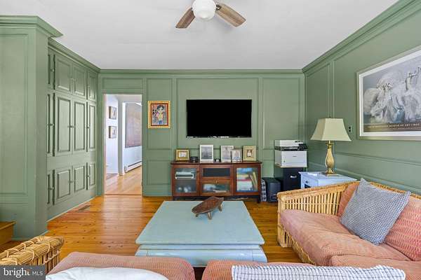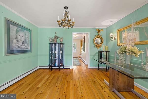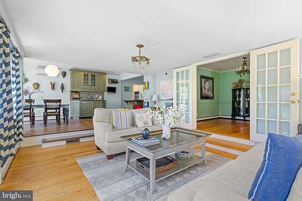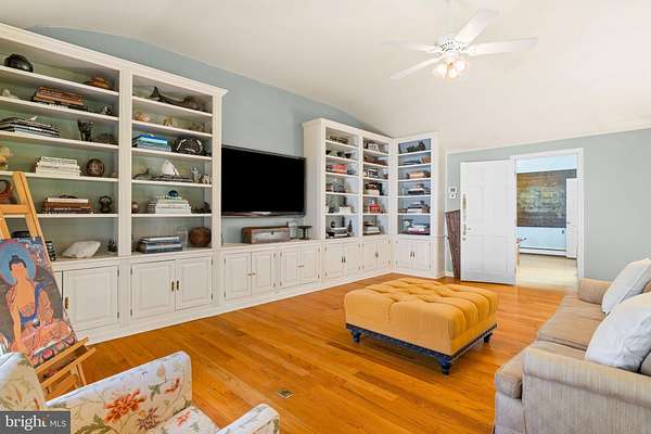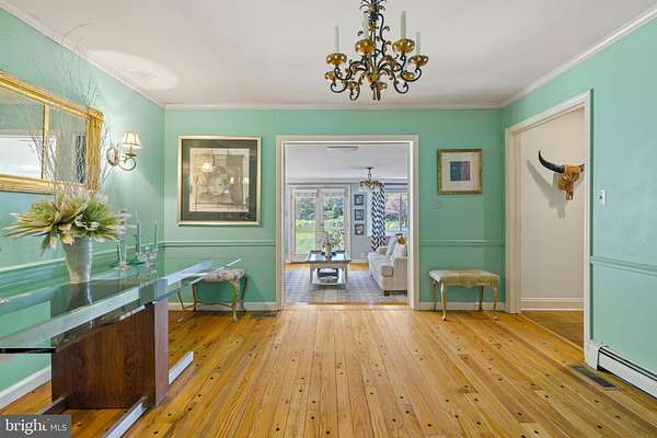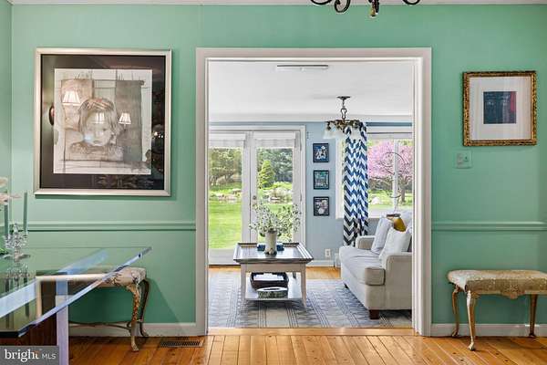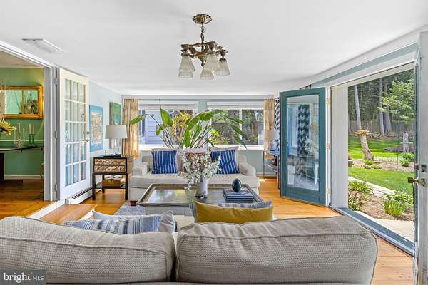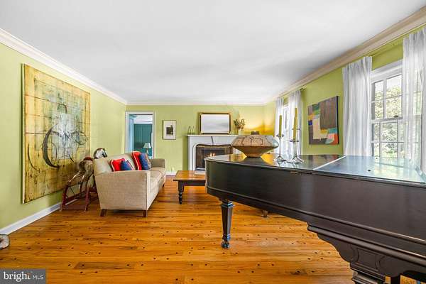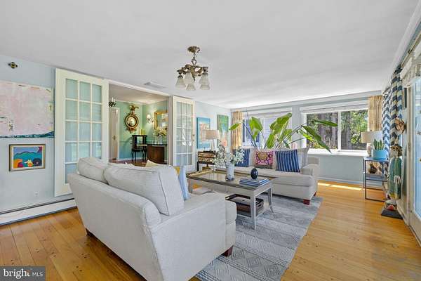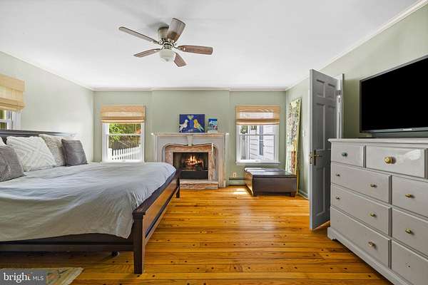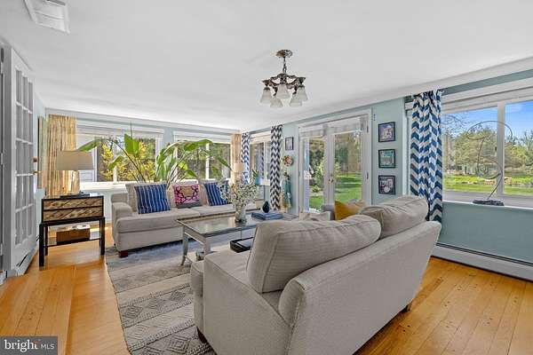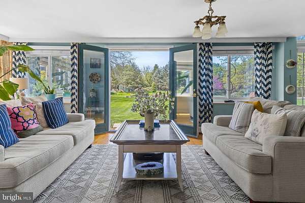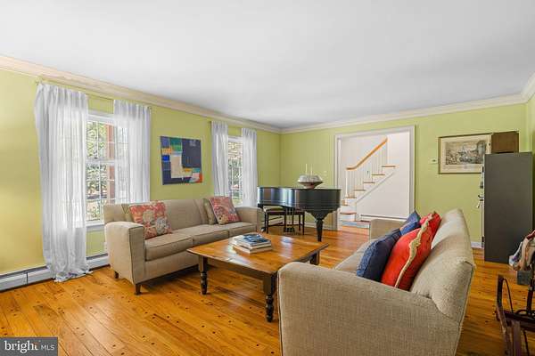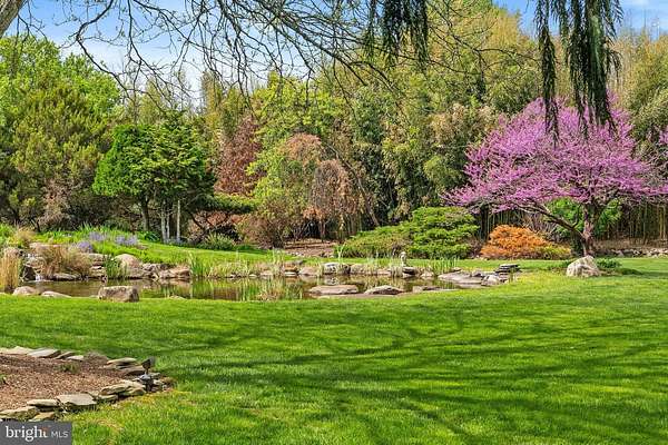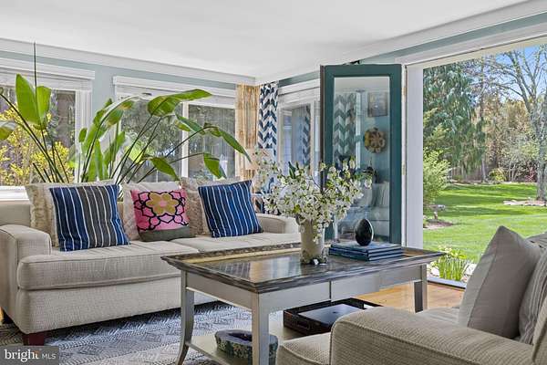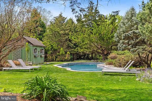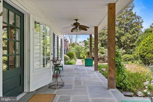Located on one of the most picturesque, coveted roads in Solebury Township, that features a historic covered bridge, is an expanded Cape Cod residence. The home, which sits on 3 bucolic acres, is surrounded by lush mature landscaping, walking trails, and stone terraces. And don't forget the pool and koi-filled pond! Elegantly refreshed and thoughtfully designed, the residence boasts architectural details and generous living spaces just minutes from downtown New Hope. From the moment you arrive, the expansive covered front porch sets the tone with its charming flagstone flooring that evokes the timeless beauty of a Southern veranda. Step inside to discover wood flooring, mostly throughout, custom wainscoting, four fireplaces and a breakfast room that is continually bathed in natural light. Most coveted is a first floor primary bedroom with a sumptuous en-suite bath that features a soaking tub and walk-in shower. The first floor plan continues with a formal dining room and living room that flank the entryway. Facing the spectacular lawn and gardens is a cozy sitting room which is adjacent to the breakfast room and gourmet kitchen, outfitted with top-tier Viking and Subzero appliances, a cooking island, wet bar with a copper sink and custom cabinetry. The eat-in breakfast room flows seamlessly into the adjoining spacious and airy sitting room . Also on the first floor is a "Ralph Lauren" library with fireplace, an over-sized half bath and a laundry room. A newer and separate wing offers a grand library, with custom built-in bookcases and a wood-burning fireplace. This wing has a separate staircase to a large Guest Suite with spacious bath. The main upper level offers 2 large bedrooms, and a hall bath. Also included is a two-car side entry attached garage.. This property offers both privacy and tranquility, all within the award winning New Hope-Solebury school district. An extraordinary opportunity to own a residence on one of the idyllic country roads in Solebury!
