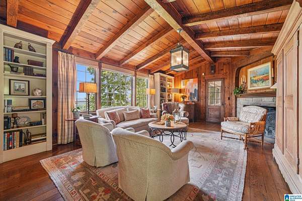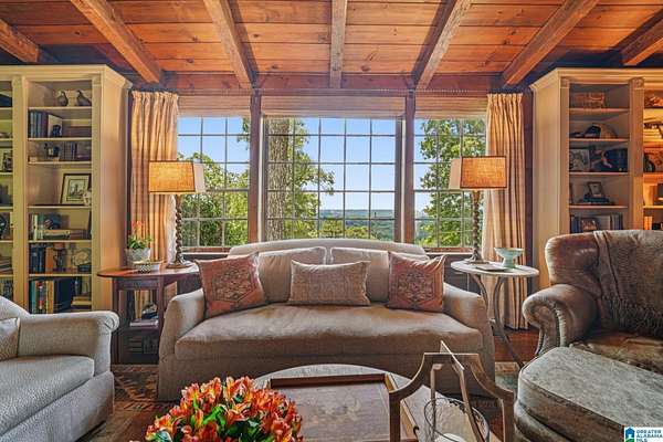 Set on 3 1/2 acres, an elegant estate offers panoramic views, generous living spaces and a seperate guest house. The main 4 bedroom home features exquisite details with hardwood floors, soaring ceilings and beautiful crown molding. The family room is stunning with vaulted ceiling, exposed beams and stone fireplace. A second fireplace anchors a screen porch-perfect for cozy fire and sweeping mountain scenery. The formal living and dining rooms open to a sunroom with views of patio and backyard. Retreat to the primary suite with sitting area and marble bath alongside second bedroom and bath. Upstairs find 2 bedrooms, bath and sitting area. Over the garage a bonus room and bath can be an office, studio or 5th bedroom. The guest house with 2 bedrooms and 2 bath is perfect for extended family or rental. This historic estate blends dramatic architecture, breathtaking scenery and unmatched charm.