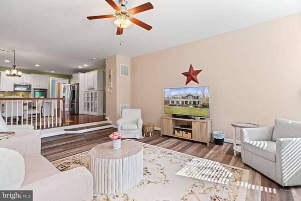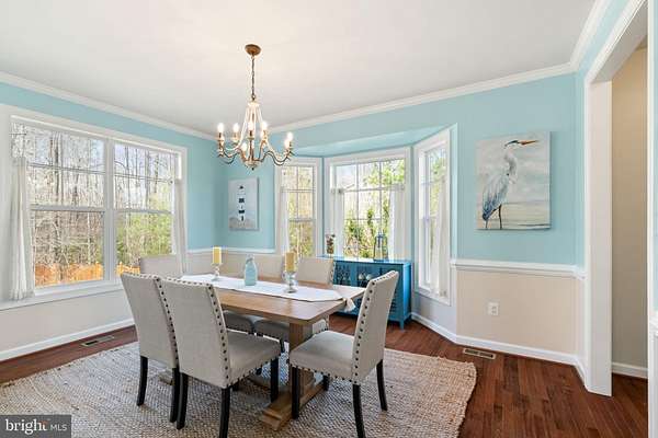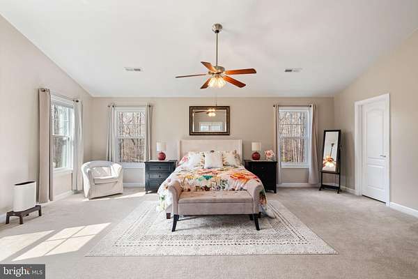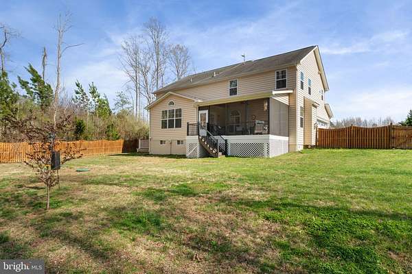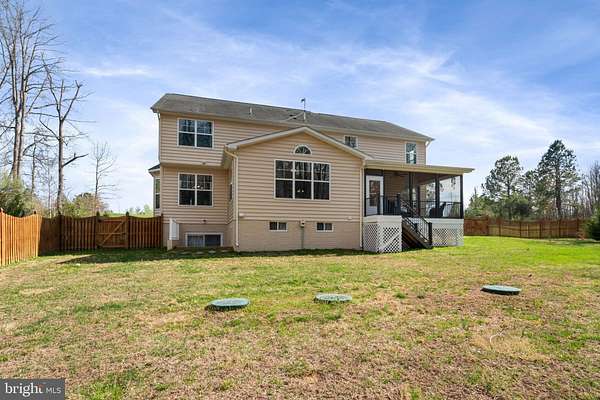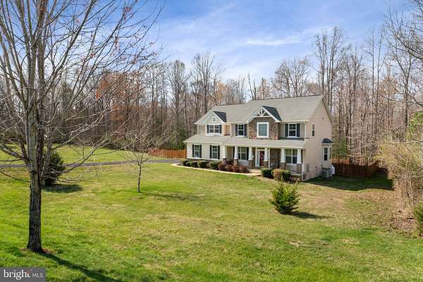 Nestled on over 3.6 private acres in the established Poplar Estates community, this spacious Colonial offers the perfect blend of privacy, functional living, and inviting indoor-outdoor spaces. Surrounded by mature trees and open landscape, the property delivers a quiet, tucked-away feel while remaining convenient to Stafford's main commuter routes, shopping, and dining. A welcoming covered front porch sets the tone, leading into a two-story foyer with hardwood flooring and natural light that carries throughout the main level. The well-designed layout includes formal living and dining spaces with crown molding and chair rail detailing, along with a dedicated home office for added flexibility. The kitchen is thoughtfully appointed with granite countertops, a center island, double wall ovens, electric cooktop, stainless steel appliances, and freshly painted white cabinetry, offering both functionality and style. The adjacent family room features LVP flooring and a gas fireplace, creating a comfortable gathering space that flows seamlessly to the outdoor living area. Enjoy a fully screened and covered deck with ceiling fan-perfect for relaxing or entertaining-overlooking the expansive yard. Upstairs, the primary suite offers a spacious retreat with vaulted ceilings, walk-in closets, and an en-suite bath featuring a soaking tub, fully tiled shower, and dual vanity with updated fixtures. Additional bedrooms include en-suite bath access, providing comfort and privacy, while a conveniently located upper-level laundry adds everyday practicality. The lower level expands the living space with a recreation room, media room, additional bedroom, laundry and full bath-ideal for guests, extended stays, or flexible use. With approximately 5,420 total square feet, a two-car attached garage, private well and septic, and a large, usable lot, this property offers space, versatility, and long-term value in a desirable Stafford setting.