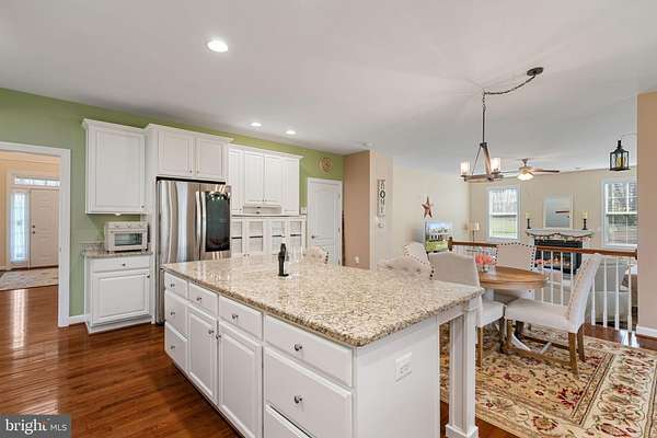 - Breakfast Area, Carpet, Ceiling Fan(s), Chair Railings, Crown Moldings, Dining Area, Family Room Off Kitchen, Gourmet Kitchen, Island Kitchen, Open Floor Plan, Primary Bath(s), Table Space Kitchen, Tub Shower Bathroom, Upgraded Countertops, Walk-In Closet(s), Walk-In Shower Bathroom, Wood Floors