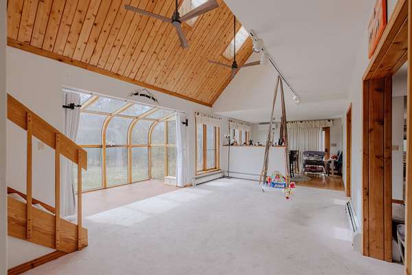 Welcome to 65 Glebe Road in sought-after Spofford, NH—a contemporary home with a large 3-car garage equipped with electric vehicle (EV) charging. This gorgeous home is designed for comfort, functionality, and filled with natural light. Offering 3-4 bedrooms and 2.5 bathrooms, this home features a bright and inviting layout anchored by a stunning atrium in the living room, allowing sunlight to pour in and create a warm, open atmosphere you’ll feel the moment you walk in. The main living space flows effortlessly, while the addition of mini-split systems provides efficient, year-round climate control for personalized comfort. Downstairs, you’ll find two fully finished bonus rooms—each equipped with their own mini-split units. Whether you need a home office, gym, guest space, or creative studio, these flexible areas offer incredible versatility. The basement is further enhanced with spray foam insulation, and a new propane boiler system and tankless hot water heater (2022), adding to the home’s overall energy efficiency and comfort. This property blends natural light, smart upgrades, and adaptable living space—65 Glebe Road is ready to meet you where you are and grow with you.