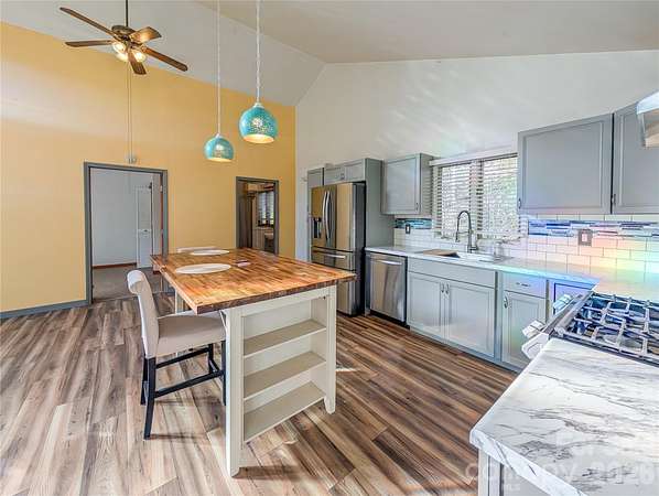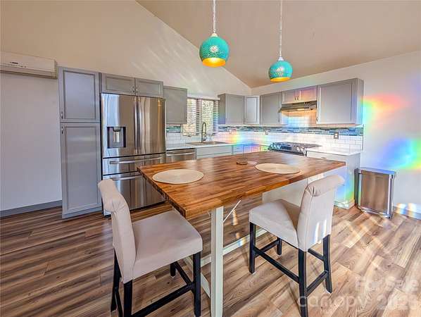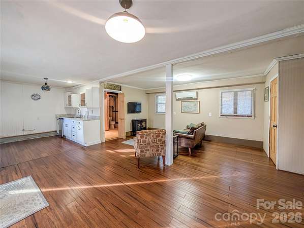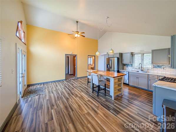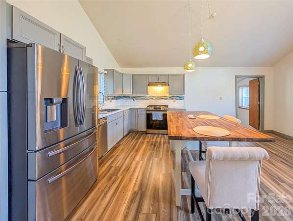 Tucked into the quiet rhythm of the mountains, where mornings begin with birdsong and evenings settle beneath painted skies, 65 Happy Hollow Rd invites you to slow down and live with intention. Set on 2.32 unrestricted acres of usable, gently rolling land, this two-story barndominium offers a rare blend of practicality and possibility-whether you're dreaming of a mini-farm, a peaceful retreat, or an income-producing investment. Located in the Brush Creek area of Yancey County less than 15 miles (right around 20 minutes) from the Town of Burnsville & just minutes away from access to North Toe River for fishing, tubing & more. Enjoy fenced pasture and garden space, a small flowing stream, and open areas ready for animals, planting, or simply breathing room. It's the kind of place where your days can be shaped by nature, not noise. Inside, the home offers flexibility across two levels, ideal for multi-generational living, rental income, or hosting guests. The upper level has been thoughtfully refreshed with a bright, updated kitchen (2022) featuring stainless steel appliances, new cabinetry, island, and updated flooring-creating a welcoming heart of the home that opens to the deck and mountain views. The main level offers a second living space with washer & dryer, full bathroom with tiled walk-in shower, bedroom & a partial kitchen already equipped with propane hookup, making it easy to convert into a fully independent living area. Comfort meets efficiency with mini-split systems on both levels, a cozy Buck stove for supplemental heat, and a tankless propane water heater-designed for year-round living with ease. Beyond the home, the property continues to deliver with a detached 2-car metal garage, attached workshop/studio with electricity-perfect for artists, hobbies, storage, or creative pursuits This property has already proven its versatility, having been used for full-time living and long-term rental, with clear potential for short-term vacation rental income as well. For added peace of mind-no known storm damage from Helene, with FEMA-supported repairs completed on the shared private road in October 2025. Whether you're planting roots, building a homestead, or expanding your investment portfolio...Happy Hollow has the potential you're seeking and more!