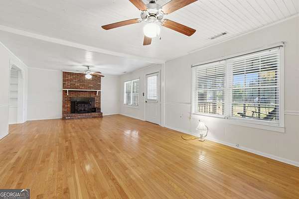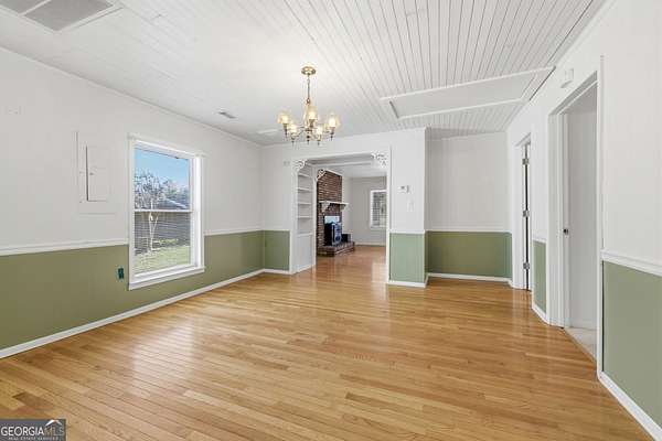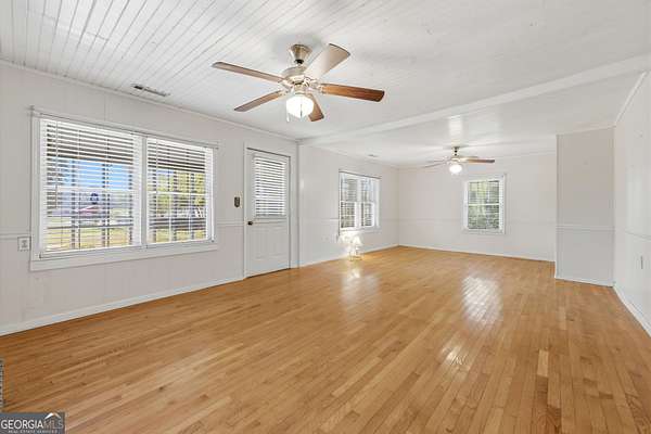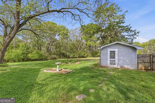 Private setting. Convenient location. Easy to call home. 2BR/1BA home on 2.03 acres, offering an inviting setting just off Highway 441. A screened porch welcomes you in and the swing is a perfect spot to slow down and enjoy the surroundings. Mature hardwoods provide shade and a natural sense of privacy. You'll get a cozy, cottage-style feel with tongue and groove ceilings throughout most of the home and warm-toned hardwood flooring in the Family and Dining areas. The spacious Family Room features a brick fireplace and an archway with built-in shelving connecting the Family Room to the Dining Area. The Kitchen offers an abundance of wood cabinetry with additional space in the mudroom for more storage. All appliances remain, including washer and dryer. HVAC system has been updated. The mudroom leads out to a back deck overlooking a level backyard with fencing along the street-great for gardening, pets, or spending time outside. Multiple outbuildings offer extra storage or space for hobbies and projects. Move-in ready with a convenient location to Athens, Commerce, and Interstate 85, while still offering a tucked-away feel that's hard to find. Minutes from East Jackson Park with playground, Nicholson Community Center and Sandy Creek Park and Nature Center. East Jackson Schools.