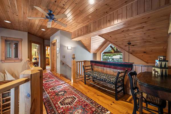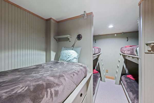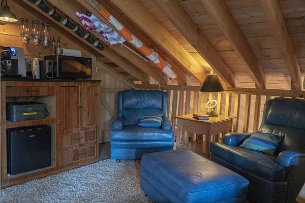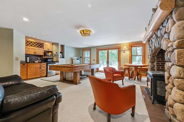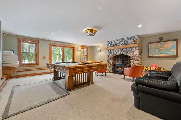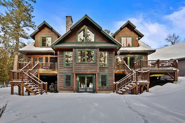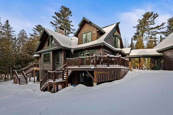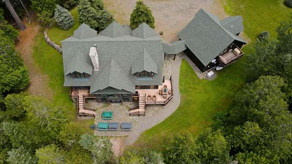 Rangeley Lake - Nestled on the serene shores of Rangeley Lake, this is an extraordinary year-round waterfront family retreat. Guests have repeatedly praised its beauty, privacy, and peacefulness. The property is well positioned for enjoyment of all 4-season sports for which the Rangeley area is highly regarded. It is also an exceptional self-contained get away for enjoyment of just this property alone. The main house is a custom-designed home spread over three levels with 5 bedrooms and 4.5 baths. A fully heated oversized double garage is connected by a covered walkway. It has complete guest quarters with private deck above. Separately, a large, detached Barn and Bunkhouse that sleeps up to 30 guests has a separate professional-grade kitchen suitable for supporting weddings, reunions, and other events. Drive-throughs for boats and snowmobiles afford added convenience for recreational vehicle storage. It's oversized area and game/play loft afford a host of activity choices regardless of weather conditions. Handicap accessibility and air conditioning in the bunkhouse assure the comfort of all guests. Step outside to an amazing 20+ acres of privacy running from Route 4 all the way to Rangeley Lake, including well over 500 feet of pristine waterfront. The property has an oversized dock and separate trampoline swimming raft, a free-standing 2-story playhouse, and a horseshoe pit. Private roads and a level grass field provide ample parking for special events. The lot has gently sloping terrain from the main house to the water's edge, which is perfectly positioned for viewing stunning sunsets from either the dock or a large firepit with seating. Fully furnished and equipped, the property can be enjoyed from day one. For those looking for supplemental income, past rentals have more than covered all operating and maintenance expenses for this large property while still reserving plenty of time for the owners' uses. Truly, this is a once-in-a-lifetime opportunity!