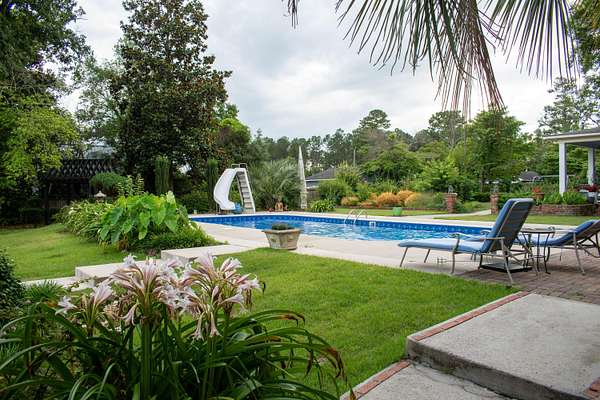 Nestled in a quiet neighborhood on a sprawling 2.5-acre estate, this beautifully updated brick ranch offers a blend of luxurious living and serene outdoor space. Boasting two master suites within the main residence, the home exudes elegance both inside and out. Electric gates at the front and rear provide added security and privacy. In addition to the added outdoor security, the home features a stunning 800 sq ft guest suite/pool house, built in 2008, with a wraparound patio, and indoor/outdoor kitchens. The guest house also includes an air-conditioned two-car garage/workshop. Designed for both grand entertaining and peaceful relaxation, the property features an outdoor fireplace and breezy patio ceiling fans. This home had a new roof installed in Feb 2022,, a fully irrigated lawn and garden, tankless water heaters in both residences, hardwood flooring, and new kitchen appliances. Words can't fully capture the magic of this property - schedule your viewing today and prepare to be amazed! Restrictive covenants convey with the sale of this property. *Additional photos coming soon*