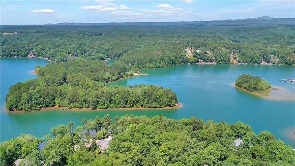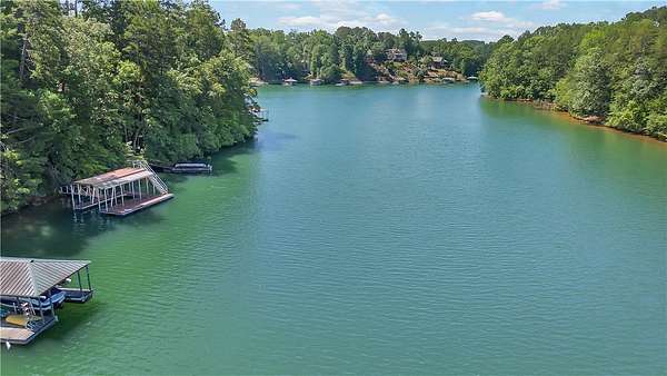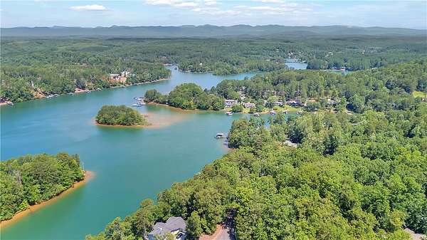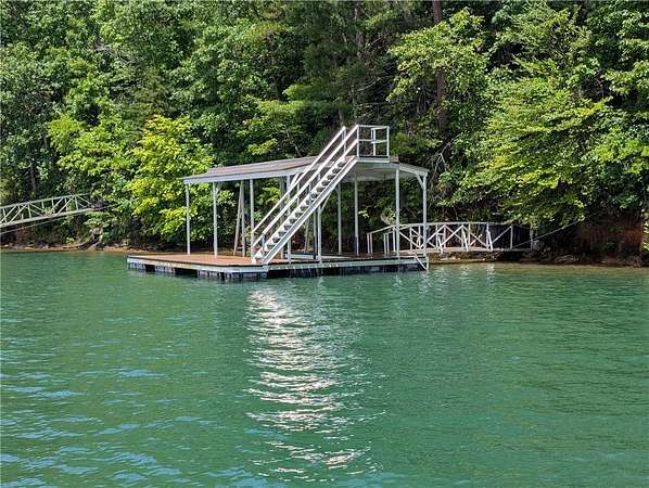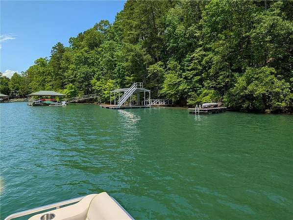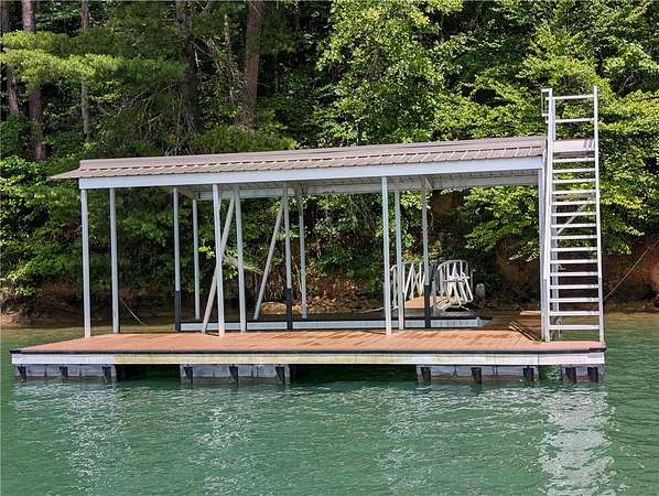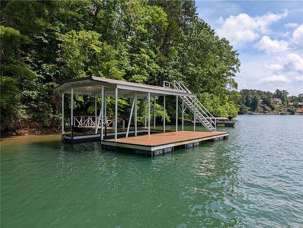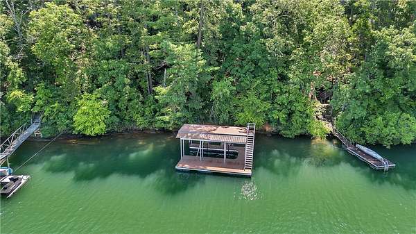 KEOWEE KEY LAKEFRONT LOT with COVERED SLIP DOCK IN PLACE. Located at the end of Mainsail Drive on the South Side near Club and Pro Shop. .40 acres and 119 feet of shoreline on this elevated sloping lot. Offers wide open views with deep water at the multi-level dock. Examples of building styles in photos of neighboring homes. Gated Keowee Key is an amenity rich community offering an 18-hole golf course, a state-of-the-art fitness center, racquetball, indoor Olympic size pool, two outdoor pools, walking trails, marinas, boat rental availability, dining opportunities with the new Bistro and the more formal Clubhouse, a dog park, lakeside walking trail & cardio trail, tennis, pickle-ball and endless number of smaller special interest clubs. This is the only available dockable lakefront lot in Keowee Key and the DOCK is already in place. Hurry! Keowee Key Capital Assessment at closing is $2800 and HOA is $3011/year.