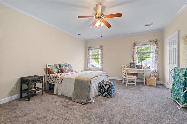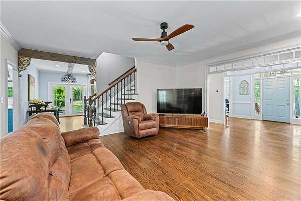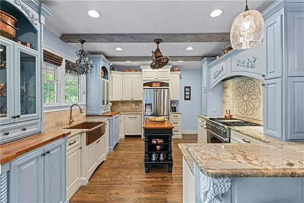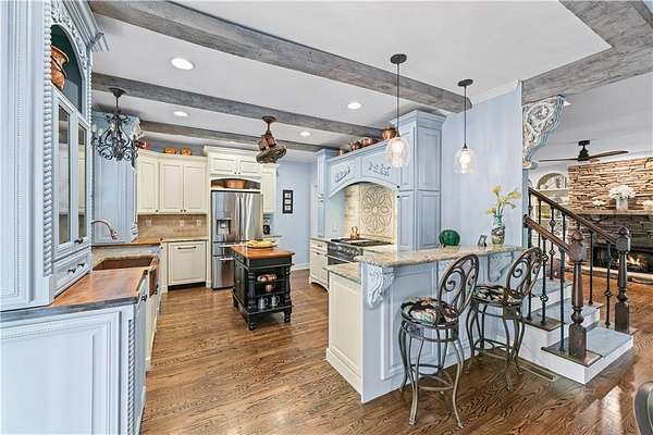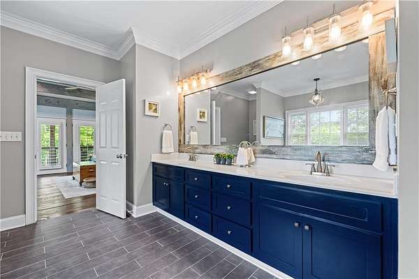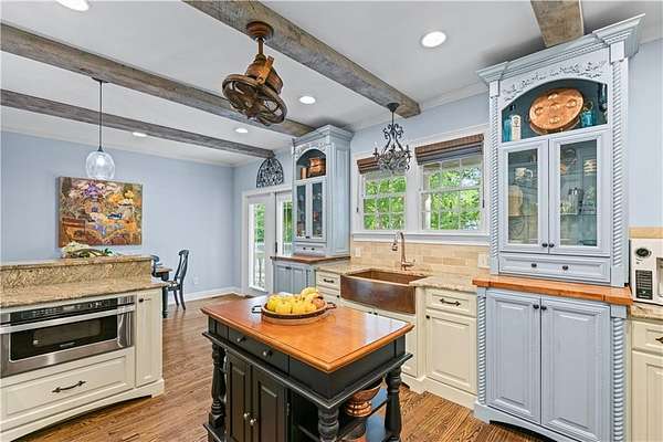 - Beamed Ceilings, Bookcases, Crown Molding, Double Vanity, Entrance Foyer, Walk-In Closet(s)