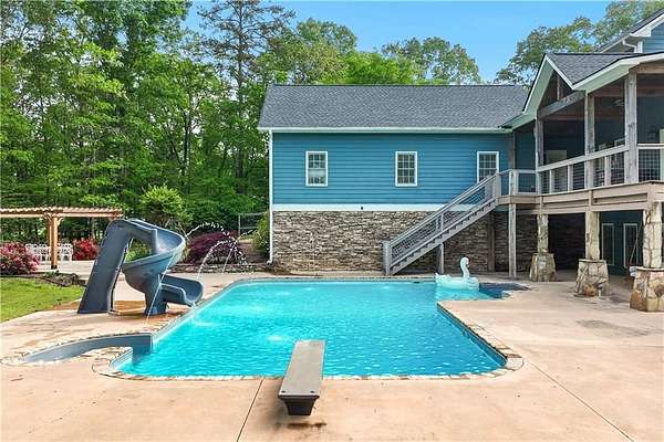 Welcome to your own personal retreat tucked away on a private, 5 acre lot! This charming home sits back on the property after a long, private driveway leading to the side entry, three car garage as well as a covered stone accent front porch and additional side porch. Enjoy quite living with total privacy! Enter the home into the foyer where you will be greeted by rich, warm toned wood flooring and a view into the dining and family rooms. Continue on into the family room where you will enjoy a stone fireplace with wood beamed mantle and custom built in shelving. Move into the farmhouse style kitchen boasting of custom cabinets, stone backsplash, detailed moulding, granite countertops, wood cabinets with under lighting, top of the line stainless appliances, breakfast bar seating, and a huge copper sink. Just off the kitchen is a casual dining space with a view of the family room. Just on the other side of the kitchen is easy access to the formal dining room with room to entertain a crowd! Also located off the main living area is a half bath and a custom laundry/mud room combo with additional countertop space for folding, cabinets for storage, and a sink. Move into your master suite where you will find an oversized room complete shiplap and beamed ceilings, a huge closet, and access to the back porch. The master bath has been updated to include a stunning vanity with double sinks, a framed mirror, a large soaking tub, and beautiful tile shower. Head upstairs will you find 3 additional bedrooms each equally spacious with a shared full bath with shower/tub combo. Enjoy a bonus sitting room upstairs that would be great for a study, game room, or play area. Continue to the full finished basement where you will enjoy an open concept flex space with enough room for another sitting area, home theatre, game room or whatever you wish! The basement also offers a wet bar with sink and space for a refrigerator. Also located in the basement is another bedroom, a full bath, and a bonus room perfect for a home office. Over the garage is a huge unfinished room, turn it into a movie room, or home office. As if this was not enough...we have yet to talk about the outside! This huge, private lot offers a true oasis! Enjoy sitting on any of the three covered porches. Whether you are sitting on the front porch, side porch, or back porch you can enjoy views of the property or overlook the pool. The in ground, saltwater pool features a slide and diving board, making this a dream home. Other outdoor features include a covered patio from the walkout basement, a pergola area, a walking path with bridge, a chicken coop, an expansive lot to add a home garden or micro farm, as well as a working well currently used for the pool and irrigation. Also located on the property is a separate carport perfect for parking additional recreational vehicles as well as a huge enclosed workshop. This property has so much to offer and space to really make it your own! Centrally located to Rockmart, Cartersville and Rome...this home gives you the country living vibes you desire with easy access to local shopping and restaurants.
