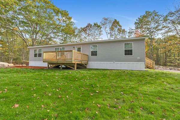 The ultimate location for privacy and seclusion! This brand-new double wide mobile home not only has an absolutely beautiful lot with the greenest grass but many upgrades inside as well. Primary bedroom has a walk-in shower and walk-in closet situated on one end of the home. Open concept living, dining and kitchen. Oversized island (4'x5') with walk in pantry and brand-new stainless appliances. 3 bedrooms and 1 bathroom leading to the rear entry of the home. Rural but yet close to 111 to hop onto the turnpike. Close to local lakes, locally owned shops, bakeries and more. Less than 40 minutes to Portland and about 1 hour and 30 minutes to Boston. Please use Williams Rd, Lyman in your GPS for location as this is not on google yet. Taxes are vacant land and need to be assessed.