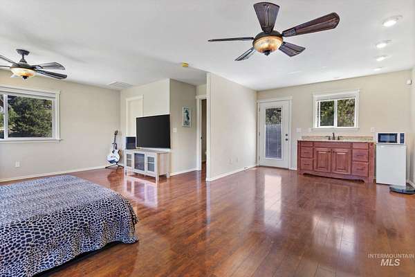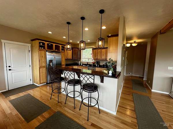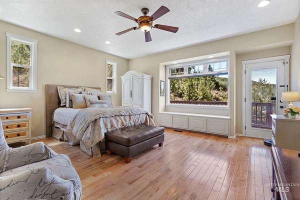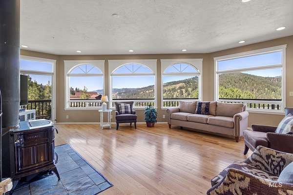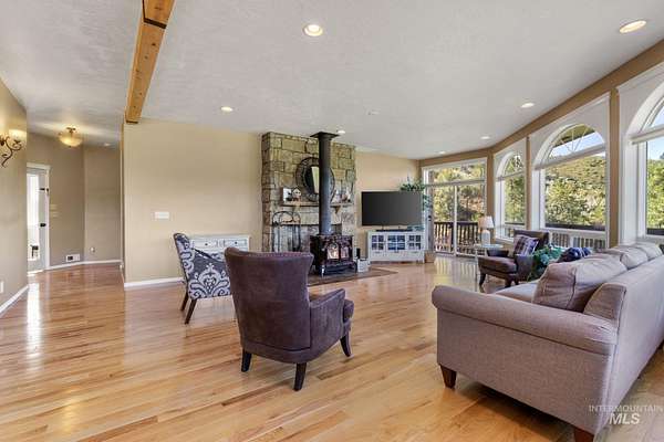 ENTERTAINERS DELIGHT-inside and outside!Welcome to your refreshed custom home located in Osprey, Boise Mountains Premier Community! Spacious open planning throughout with main level great room; dining room; kitchen bathed in light-perfect for entertaining or just enjoying the million dollar views. Large view windows on all levels, complete with custom window coverings & tinting to let the sun in-keep the fade out. Beautiful red oak flooring on the main level and LVP downstairs updated less than 3 years ago. Granite & marble countertops in kitchen & baths. Main level owner suite/ensuite. Large utility room w/abundant cabinets w/bonus of built in shelving; sink & folding tables. Additional living quarters upstairs complete w/mini kitchen; half bath; HVAC & spacious walk-in closet-ideal for guests; game room; office space or apartment. Warm & cozy with two wood stoves & a pellet stove. Multiple flex room areas and large storage area to accommodate all your all your tools, extra food, holiday decor and other needs.4-CAR GARAGE capacity. Room for a shop