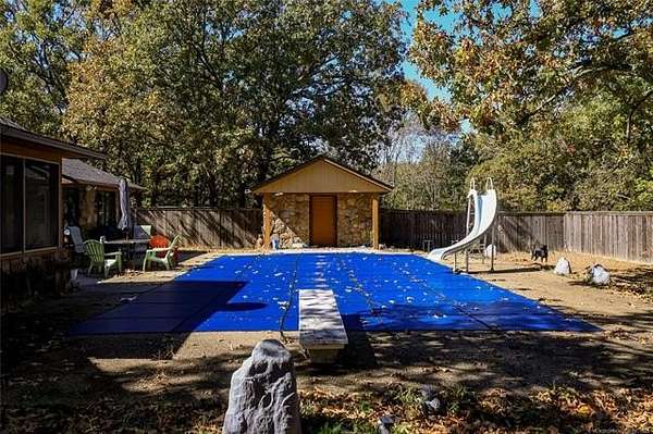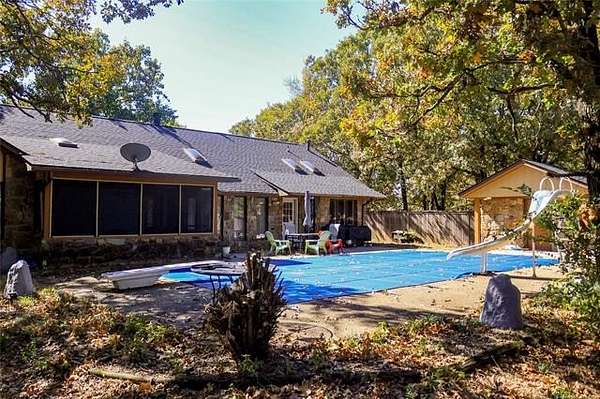 The ultimate family retreat with pool and 9+ acres. Discover a beautifully updated home designed for making memories. This spacious 4-bedroom, 3.5-bath property offers everything a family could want, from the open-plan kitchen with a large island perfect for homework or party buffets, to the cozy warmth of a stunning see-through fireplace shared between living areas. The fun continues outside in your backyard oasis. The sparkling in-ground pool featuring a slide and diving board, is ready for your first pool party of the season. Complete with a new liner, cover and pump. A dedicated pool house provides a convenient half-bath, keeping wet feet out of the main house. Plenty of room to roam on over 9 acres, loaded with a fully stocked, spring fed pond, there's always an adventure waiting. Recent interior updates include new ceiling fans, new light fixtures, outlets, light switches and faceplates. With a brand-new roof (Nov 2024) this home is move-in ready.