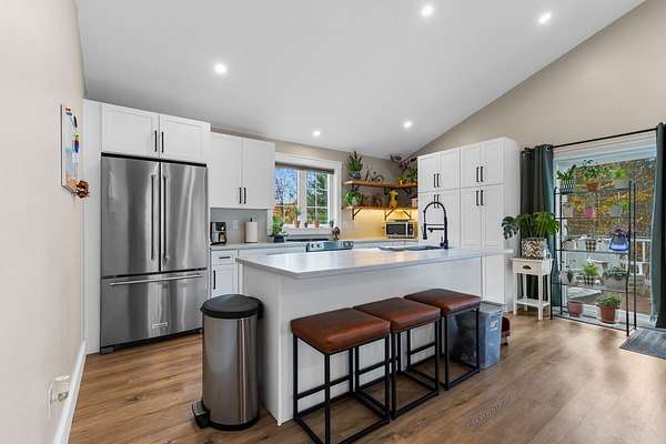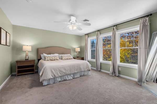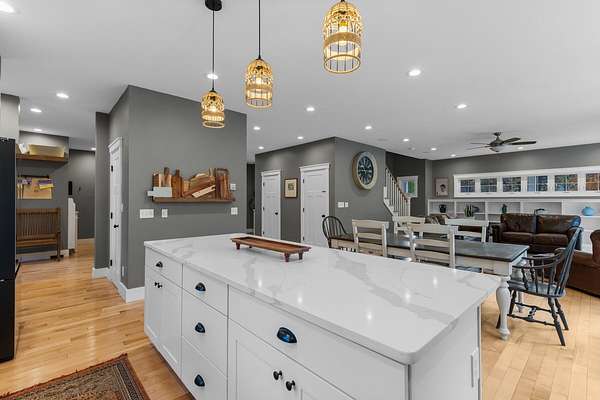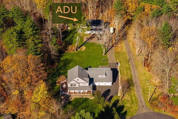 Nestled at the end of a private cul-de-sac on nearly 10 acres in Southern Maine, this custom farmhouse compound offers two residences, income potential, and unmatched flexibility. The 4,971 sq ft main residence welcomes you with a wraparound farmer's porch, 9'6'' ceilings, rich maple flooring, and a custom kitchen built for everyday living and entertaining. The main level includes an optional first-floor bedroom; upstairs, you'll find a primary suite with a walk-in closet and spa bath, two additional bedrooms, and second-floor laundry, a flex office with a Murphy bed, third-floor bonus space. In addition, a daylight walkout basement with a gym, theater, and wet bar, rounds out the home. Above the garage, a fully self-contained suite with private entrance, full kitchen, laundry, and deck is perfect for extended household members or guests. The 2024 detached ADU (988 sq ft) is turnkey and ready with two bedrooms, one bath, cathedral ceilings, engineered wood floors, high-efficiency HVAC, and its own septic system installed in 2024. Ideal for rental income or multigenerational living. The 9.6 private acres include an irrigation system and established landscaping. Minutes to Kittery shopping, Portsmouth's dining and arts scene, multiple beaches, and year-round outdoor recreation. Privacy and convenience without compromise.
