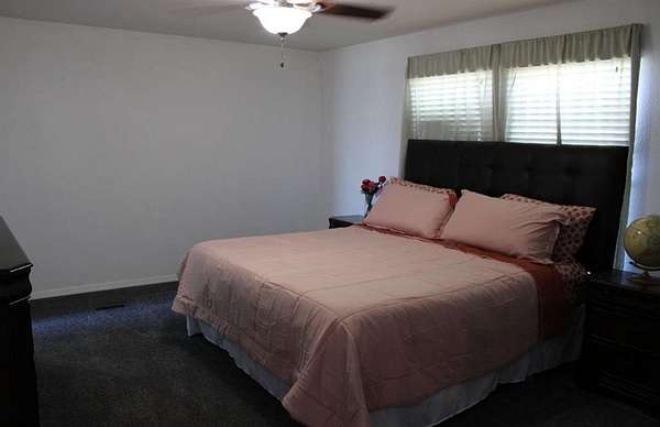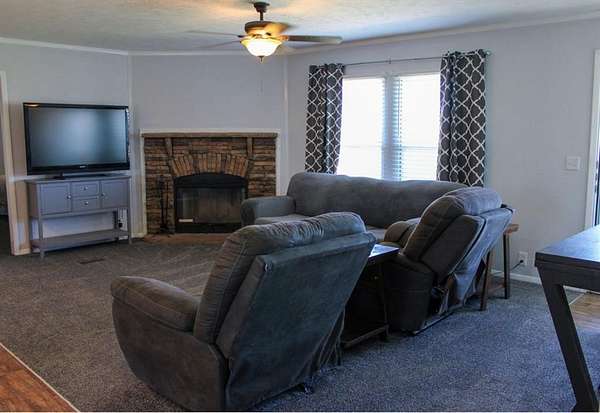 The home is complemented with a remodeled-kitchen featuring new countertops and cabinets, new carpet in the living room, and spacious bedrooms all containing walk-in closets. The primary suite provides privacy and elegance, with a walk-in closet and private en-suite bathroom. Outside, the 3.226 acres offer endless opportunities and includes a covered patio attached to the back of the home--perfect for a space to relax and gaze out at the open fields.