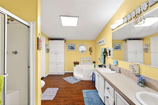 Inside, the home features an inviting and functional layout with both a family room and a separate living room, a spacious kitchen with plenty of storage, and a dedicated dining area. The generously sized primary suite has a large ensuite bathroom featuring a double vanity, relaxing garden tub, and separate shower, as well as direct access to the oversized walk in closet. The second largest bedroom also features an ensuite bathroom that conveniently connects to the laundry room. The laundry room also serves as a mud room with exterior access to the back porch.