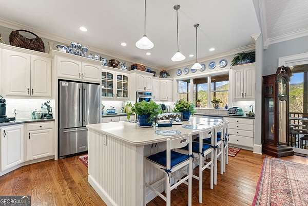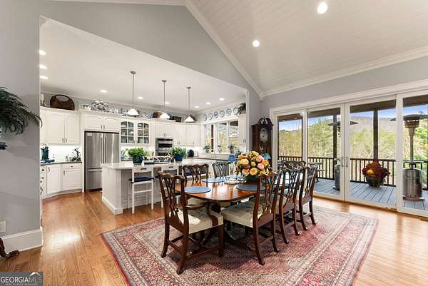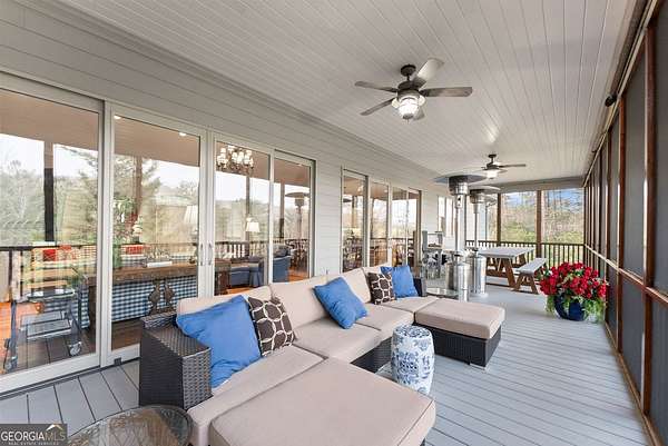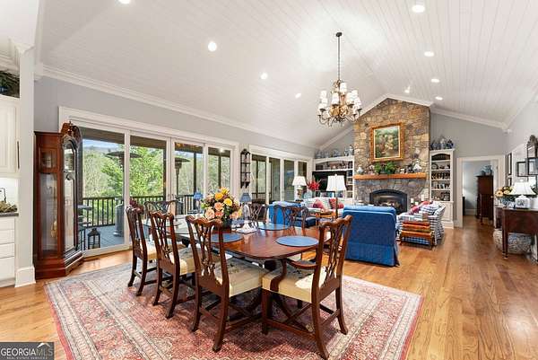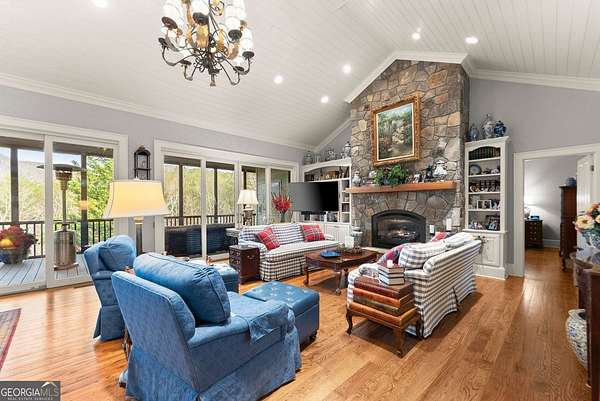 Stunning 3 bed, 3 bath, 4301 sqft mountain retreat in the highly sought-after Sky Lake Community of Sautee Nacoochee, offering breathtaking long-range mountain views and exceptional privacy on 6.6 acres adjoining National Forest. This beautifully maintained home blends comfort, functionality, and natural beauty, ideal for full-time living, a second home, or investment opportunity. Designed for gathering and relaxation, the home features spacious living areas with hardwood floors, two floor-to-ceiling stone fireplaces, and an open layout that flows seamlessly to outdoor living spaces. The updated kitchen includes stainless appliances, generous island seating, and timeless cabinetry, perfect for entertaining. The home is configured to comfortably sleep up to 11 guests across three finished levels. Recent upgrades include a new 40-year roof (2019), exterior paint (2019), interior paint including walls, trim, ceilings, and cabinetry (2020), porcelain wood-tone tile (2024), stainless kitchen appliances (2020/21), washer (2024), and dryer (2026). A 4-person elevator (2025) provides convenient access to all levels. Additional features include a whole-house generator servicing approximately 80% of the home, 3-zone HVAC, central vacuum, interior wood shutters, 7 TVs, steel safe, and central and individual water filtration systems. The property offers 400 feet of road frontage, mature landscaping, and direct adjacency to protected forest land for unmatched privacy and access to nature. Sky Lake Community amenities include a private lake for swimming, kayaking, and fishing, scenic hiking trails with waterfalls, and peaceful common areas. Conveniently located just minutes from Sautee, Helen, and Clarkesville, this property delivers the best of North Georgia mountain living.