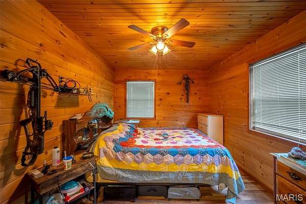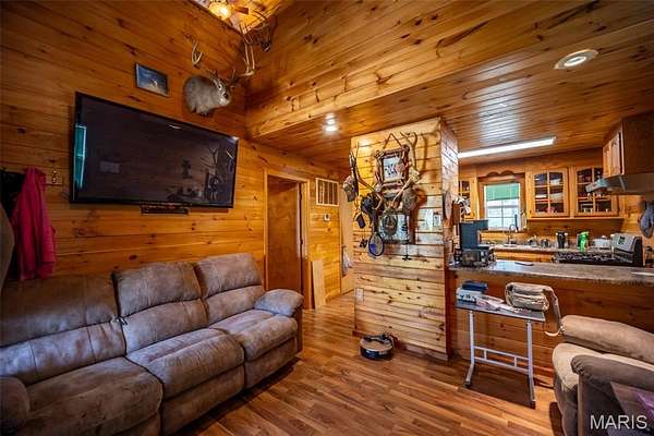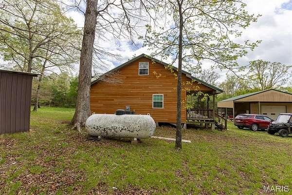 The home is accessed by a long private driveway, offering unmatched seclusion and privacy. In addition to the main cabin, the property includes a versatile shop building with partial living quarters—perfect for conversion into a shop house, guest space, or hunting lodge. A covered concrete pad provides excellent storage for equipment and machinery.