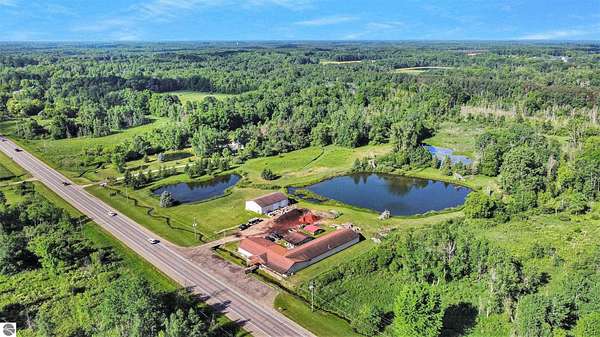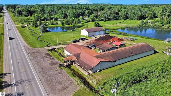 RARE opportunity on the high-traffic M-66 corridor in Stanton! A well-known community landmark for nearly 30 years, this commercially zoned 35.86-acre property with multiple buildings, ponds, and endless potential is ready for its next chapter. Located directly on the high-traffic M-66 corridor, this unique property offers 35.83 acres of commercial land with approximately 10,124 square feet of buildings, creating outstanding potential for business owners, investors, or developers. The 7,724 square foot main building has served as a pillar of the Stanton community as a well-known sporting goods shop. In addition to the main building, the property includes a 40x60 outbuilding equipped with durable 5-inch concrete floors, 14' sidewalls, and 3-phase power, making it ideal for storage, equipment, workshop space, or expanded commercial use. The pole building also features radiant heat installed in the floor that simply needs to be connected, offering excellent potential for heated workspace or additional business operations. The property also features two scenic stocked ponds. with 35+ acres of commercially zoned land and prime frontage on M-66, the possibilities are extensive for retail expansion, recreational business ventures, event space, storage facilities, development, or other commercial uses. Located just 20 minutes from expressway. The property is being offered with multiple purchase options (pending split approval), including:(1) Entire property w/buildings and 35.8 acres/ponds, (2) Main building with appx 2 acres (3) pole building/ponds, and 33 acres. Seller to consider custom splits with acceptable terms. Main building with appx 2 acres to close prior to or siultaneously with the closing of the 33-acre parcel with pole building and ponds.