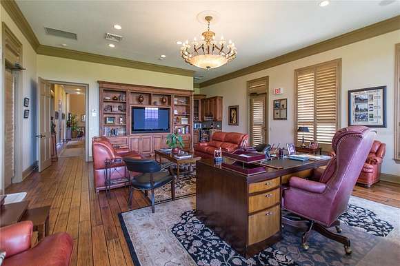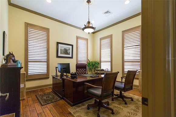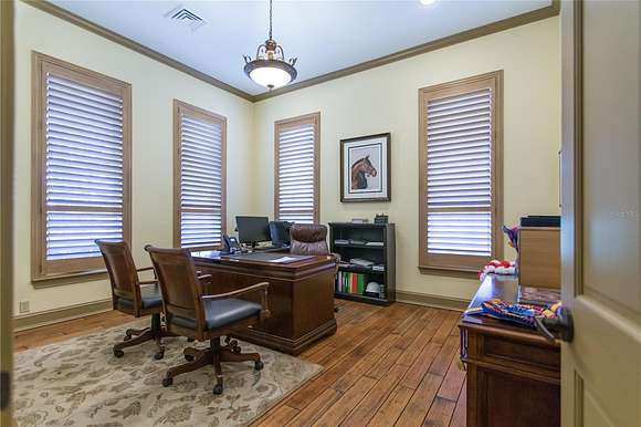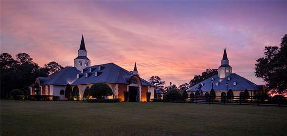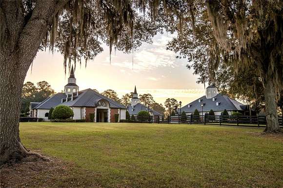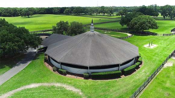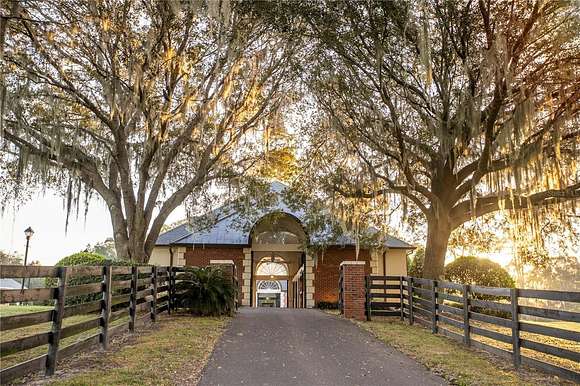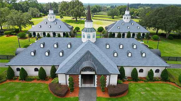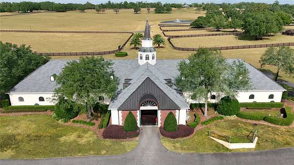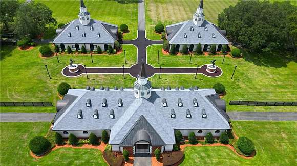 This magnificent property spans 400+/- acres & offers state-of-the-art equine facilities professionally sculpted & architecturally designed for both function & elegance. This estate property is available, for an additional cost, with two simi-contiguous owner's residence consisting of a 3.3.5 with a 1/1 apartment with 3,988 SF of living area, and a 4/3.5 with 2,428 SF of living area. Elegant office encompasses 3,984 +/- SF of superior craftsmanship, striking brick facade, & durable asphalt shingle roofing. Inside, you'll find an elegant lobby/reception area, comfortable lounge/meeting room, & numerous private offices, including an executive CEO office complete with beverage bar & a private 3/4 bath. Thoughtfully designed layout features a spacious conference room, copy/fax room, & kitchen/break area, complemented by a welcoming exterior-covered porch. The overall quality of construction is simply outstanding. The property has fiber optic internet cabling, offering modern connectivity amidst nature's beauty.