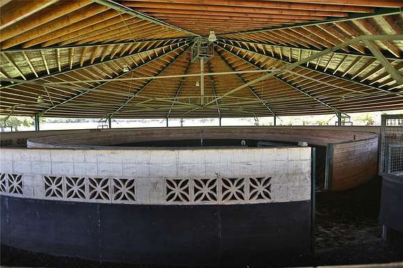 This exceptional farm includes a 5,400 +/- SF breeding barn featuring 6 premium stalls, a 13'x13' holding stall, and a dedicated observance/vet/office area. Open lab workspace & wash stall for mares further enhance the breeding experience. West wing of the barn is home to a generous 40'X40' breeding shed, boasting a concrete floor cushioned with 1" thick rubber matting for the comfort of your equine horses. Excellent center-aisle quality construction with decorative cupola, copper accents and decorative small cupolas center-aisle.